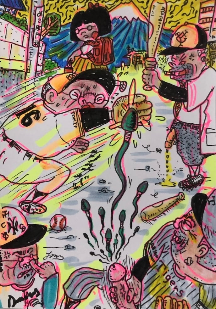 原画・着色ドローイング「父さん、娘を守る」B6