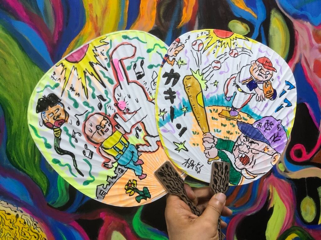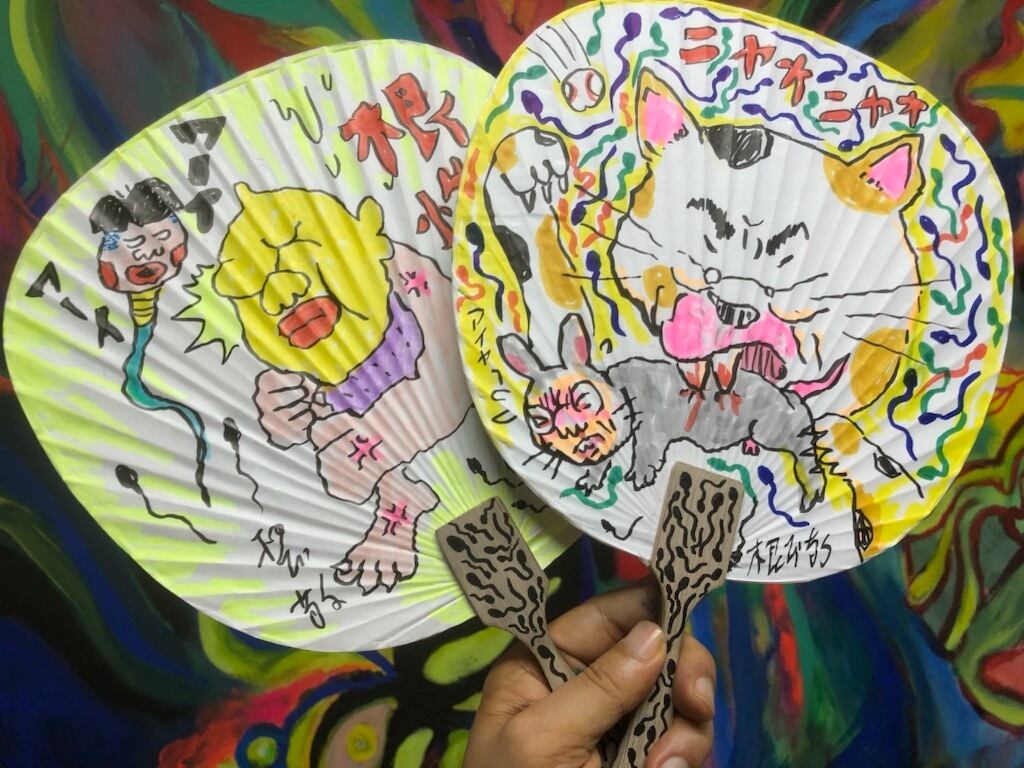 夏限定の商品です。 根本敬手描きのうちわ 両面です 持ち手の部分は精子が上品にしきつめられています とてもインパクトあり、暑い夏の間に是非使って頂きたい一品です! ※メッセージカードと共にお送りいたします。発送が定形外の大きさのため商品の値段が少し上がってしまったことご了承お願いいたします。