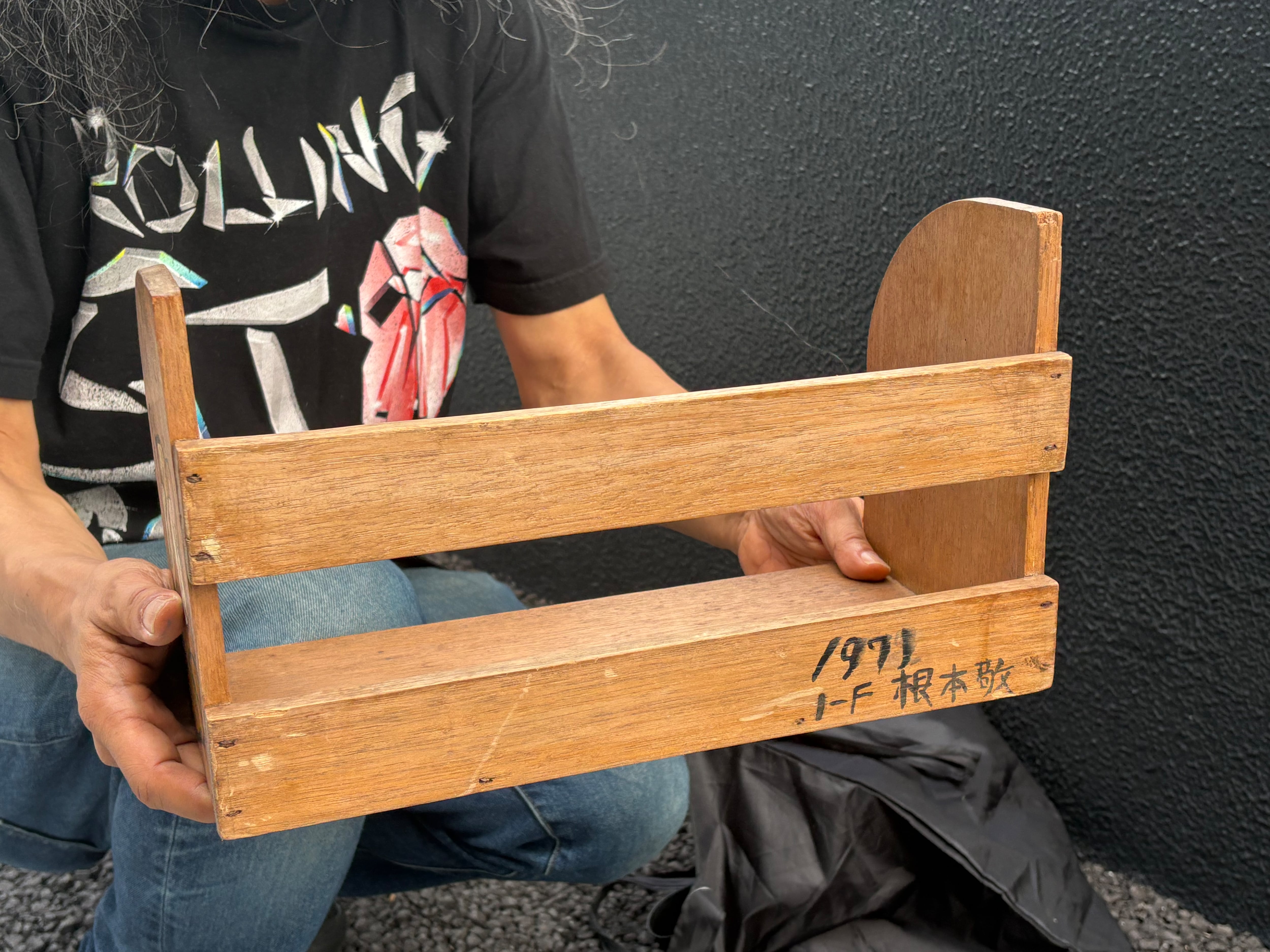 1971年。中学1年生の時「技術家庭」のときに作った本棚です。