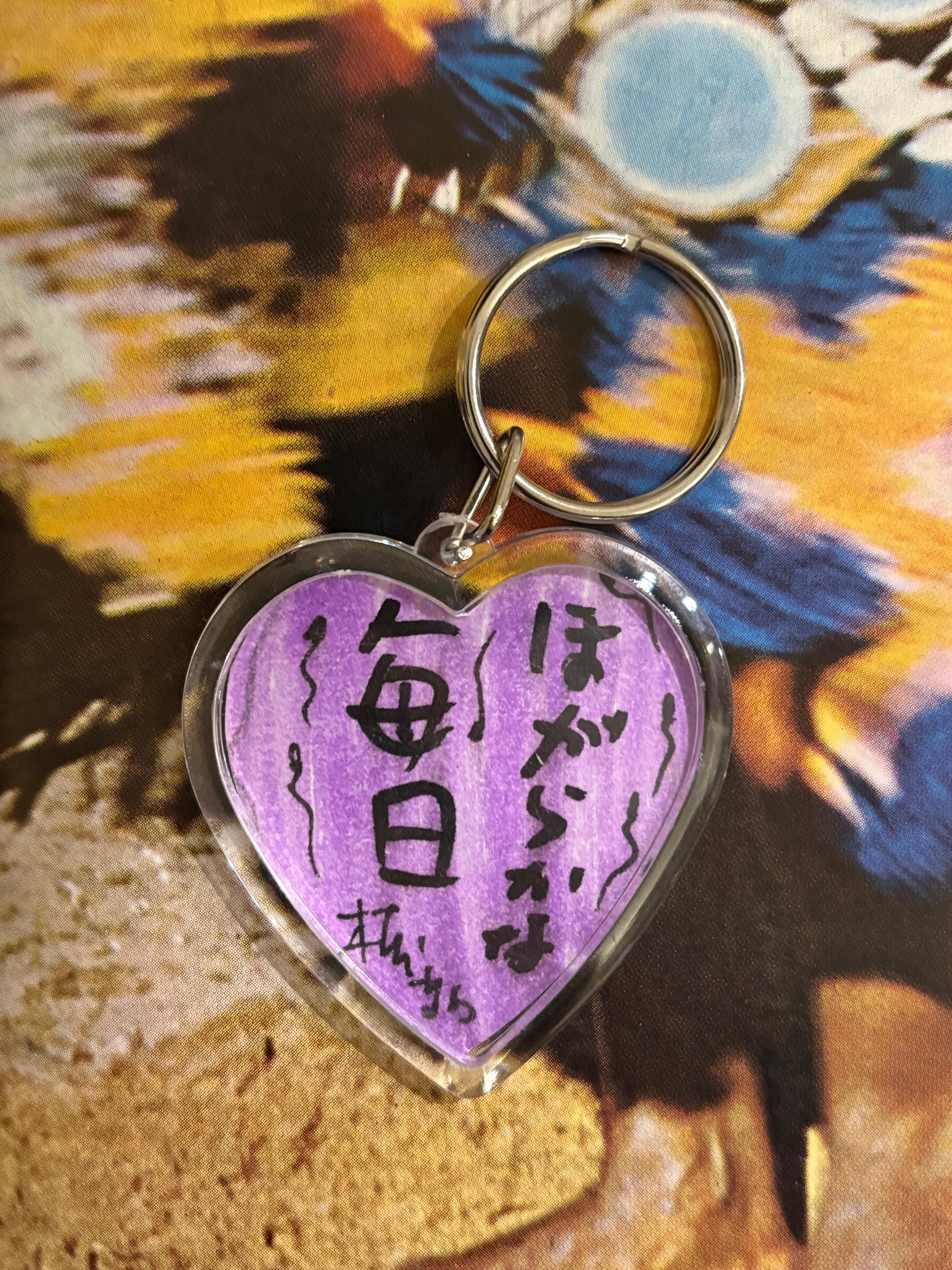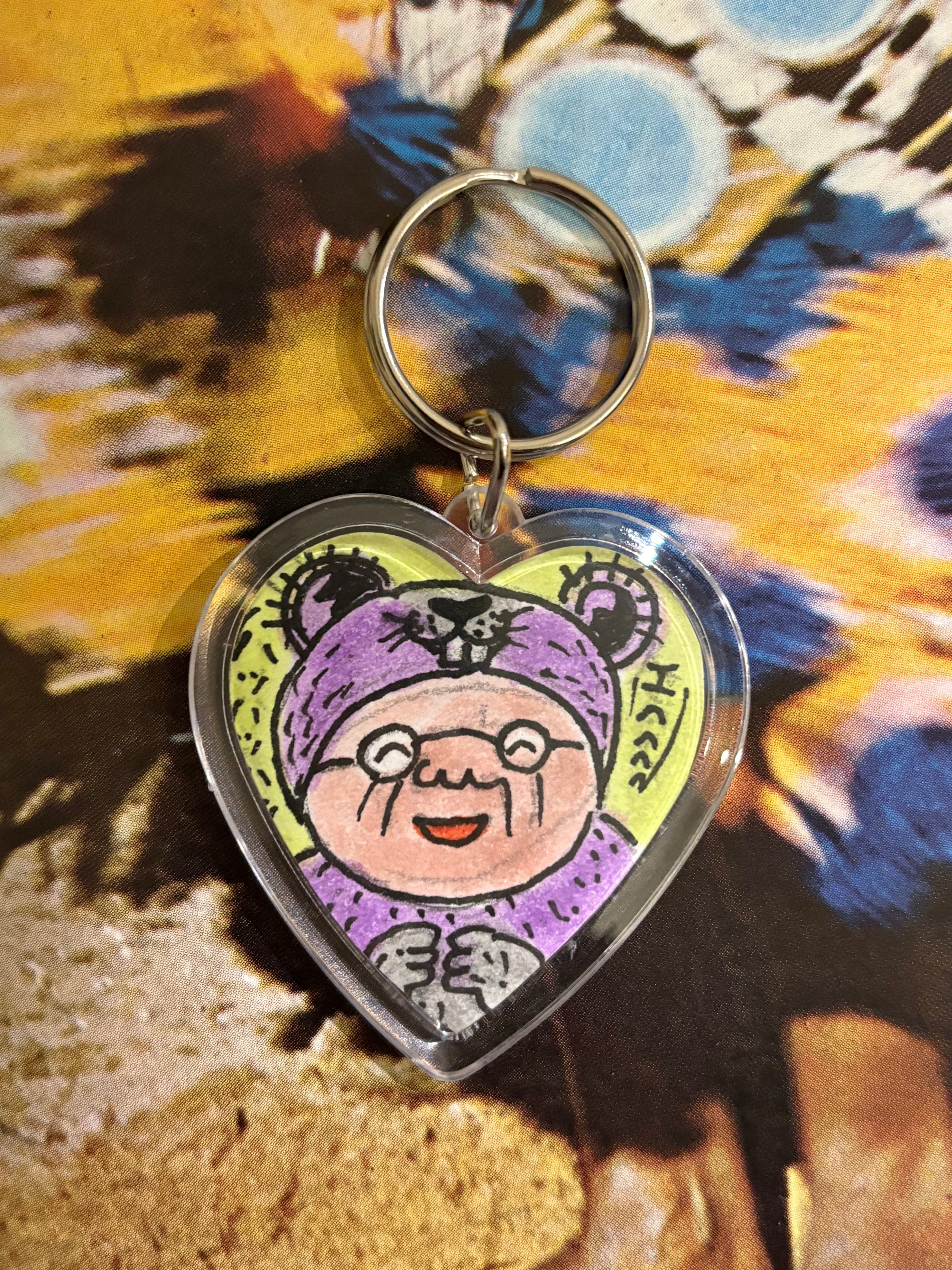 ハート型キーホルダー 中身は1枚1枚手描きのイラスト1点物キーホルダーです。 裏面にはサイン入り。 サイズ キーホルダー部分5cm 全体8cm