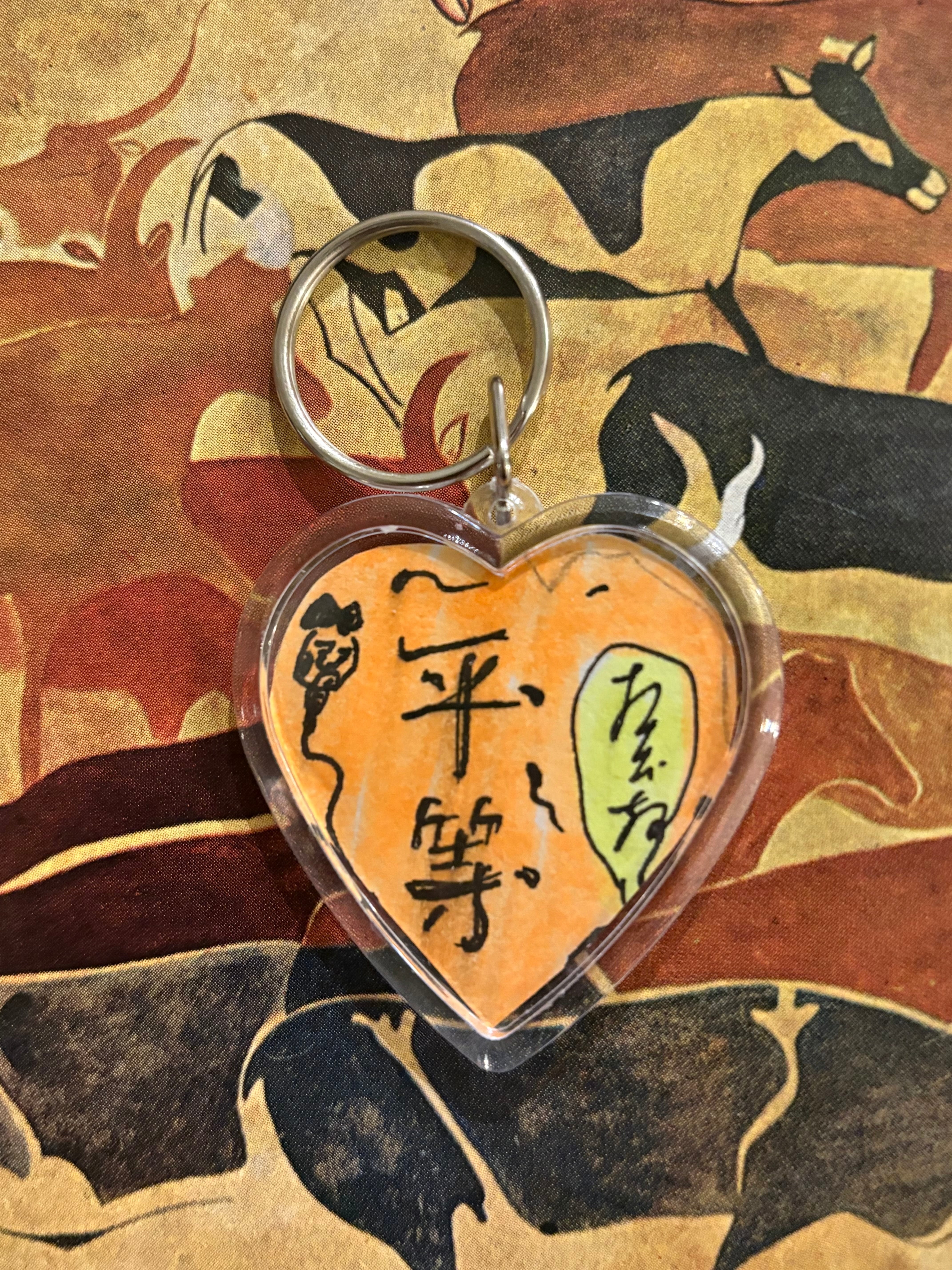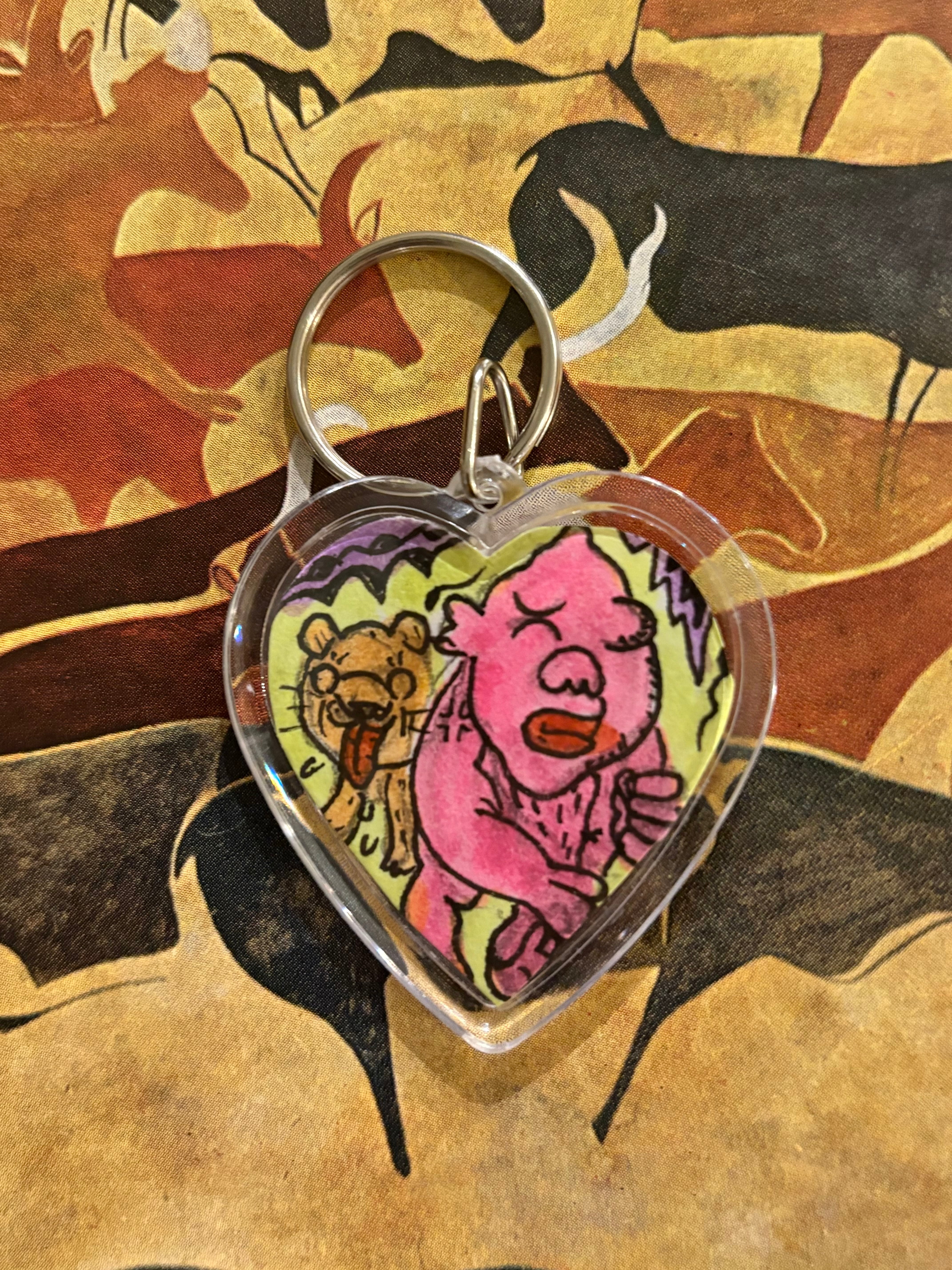 ハート型キーホルダー 中身は1枚1枚手描きのイラスト1点物キーホルダーです。 裏面にはサイン入り。 サイズ キーホルダー部分5cm 全体8cm