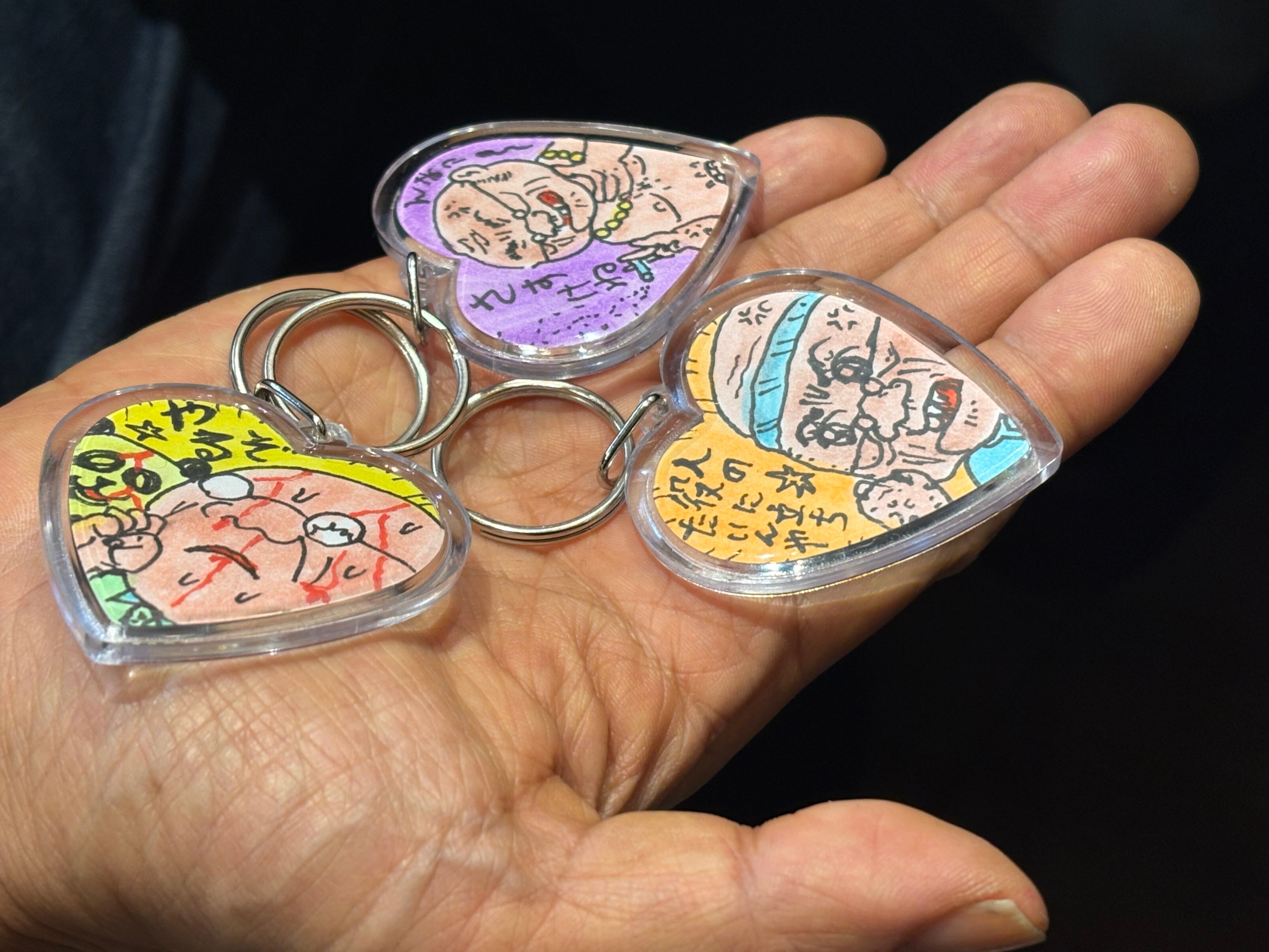 中身は1枚1枚手描きのイラスト1点物キーホルダーです。