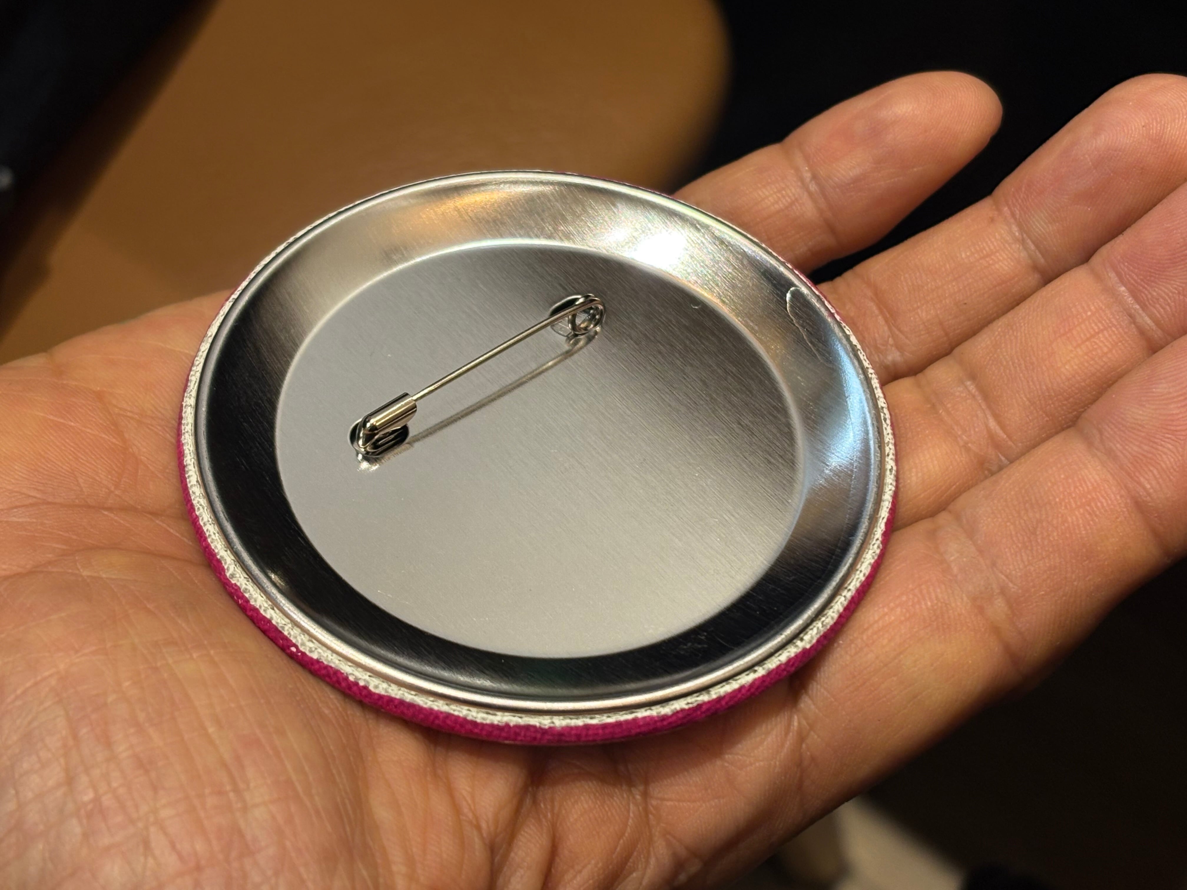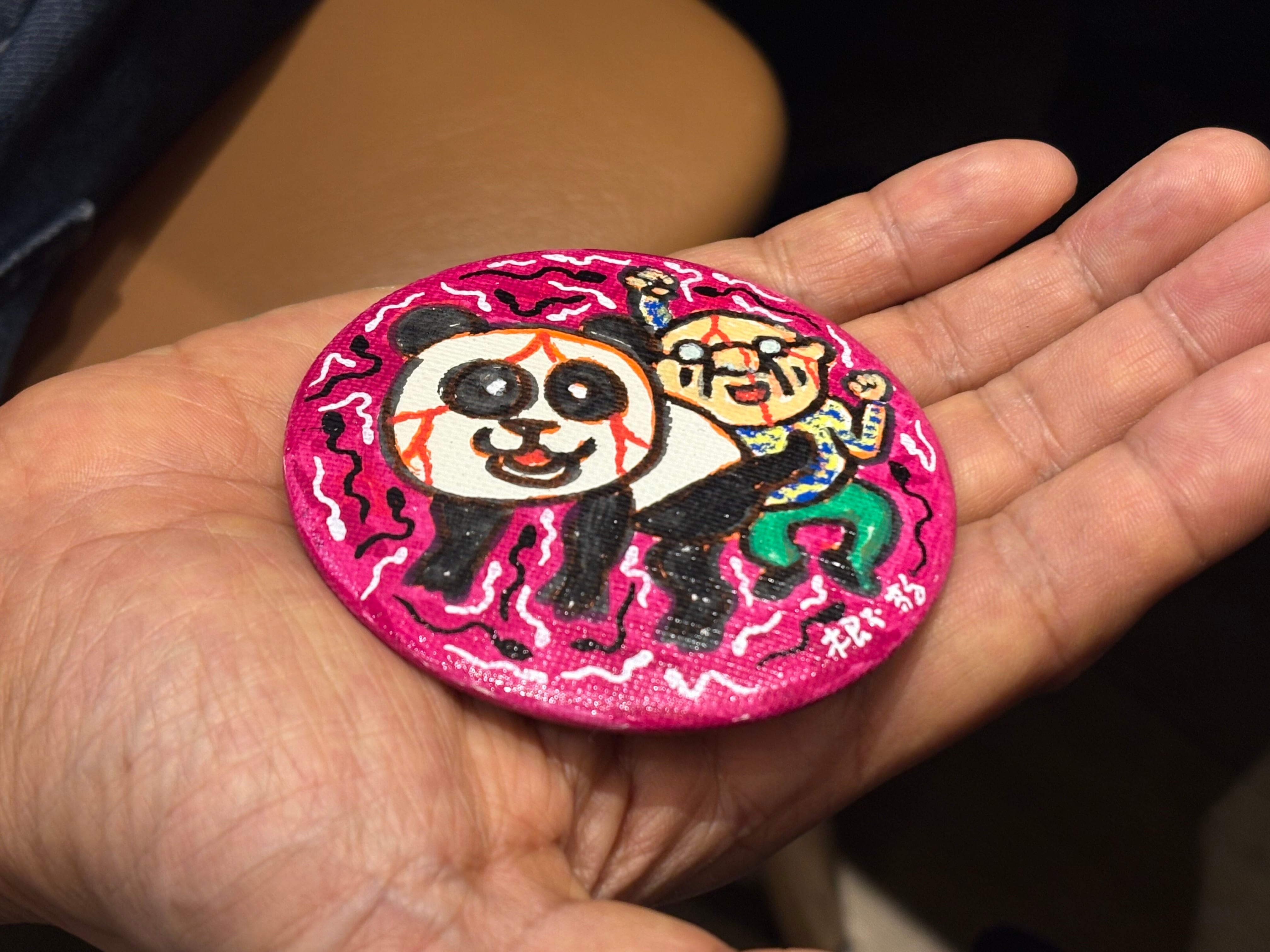 キャンバス生地に手描き1点ものバッチです。 サイズ感は3枚目の写真参照してください。