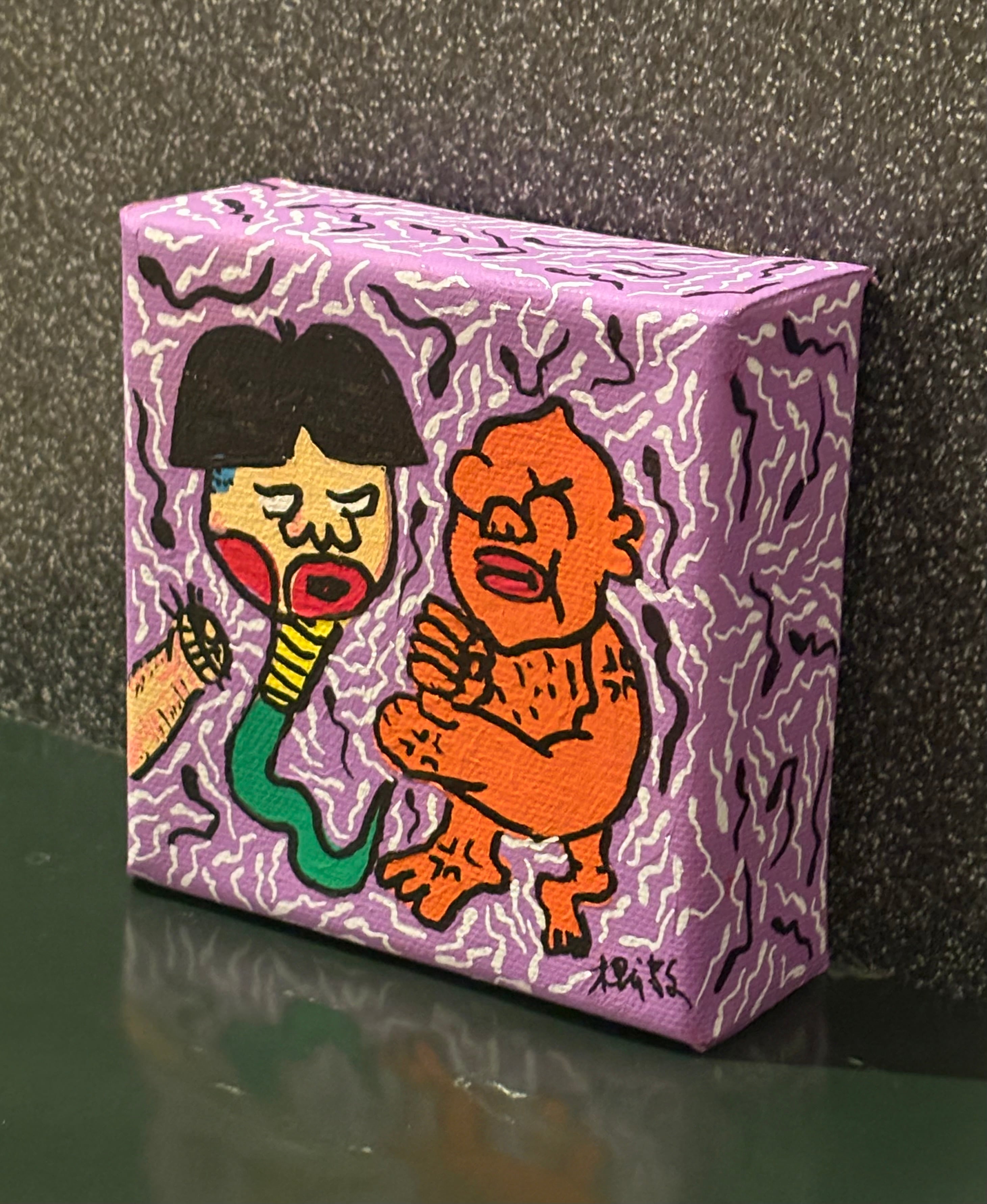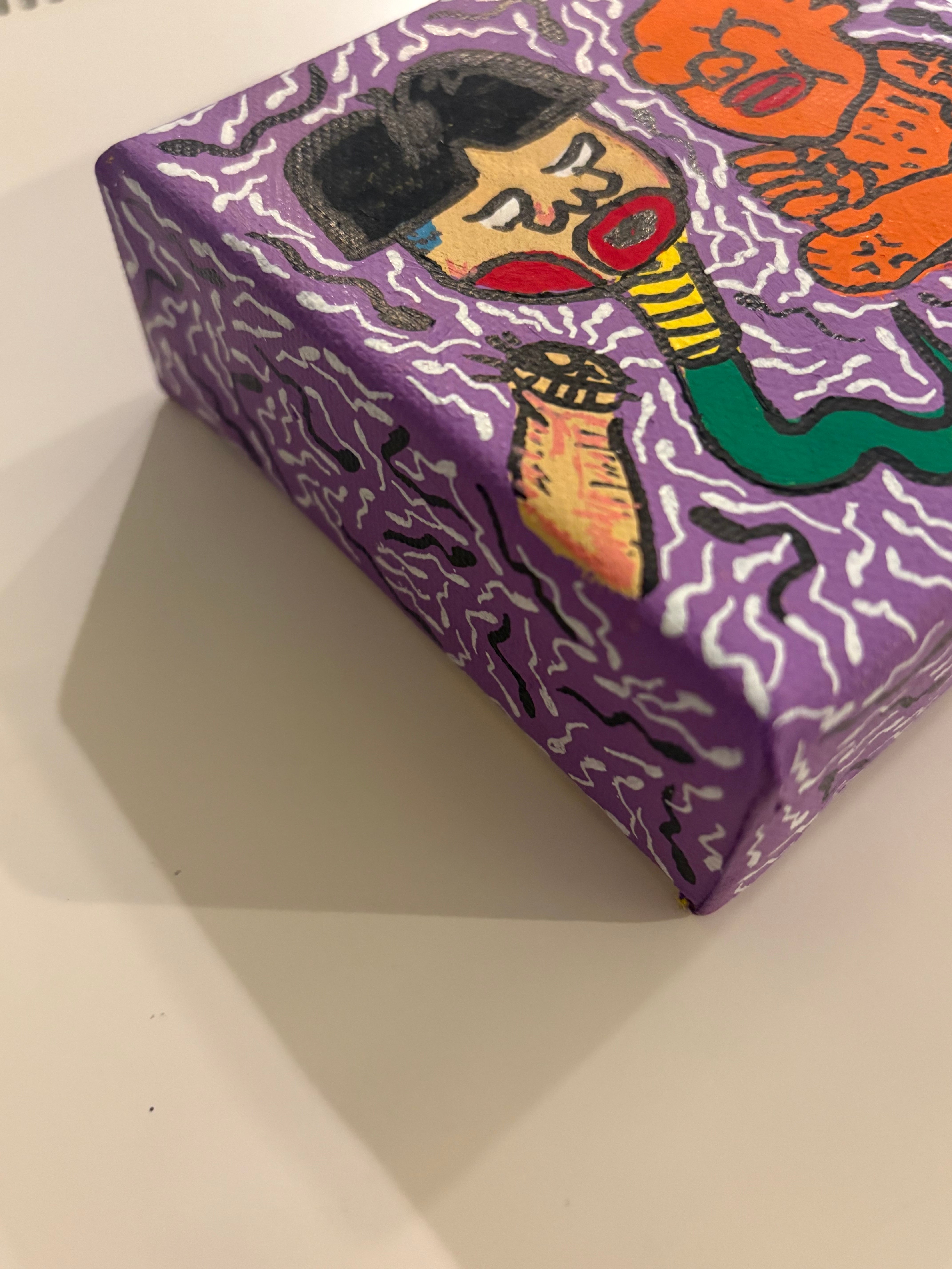 1点もの手描き3Dキャンパス絵画 3D張りキャンバスは、側面の厚さが37mm。 額に入れずに飾ることもでき、とても立体的で奥行のあるキャンパスです。 綿100%。白ジェッソ地塗り、アクリル、トップコート 木枠材質:モミ材 サイズ10cm×10cm メッセージカード付きでお送りいたします。