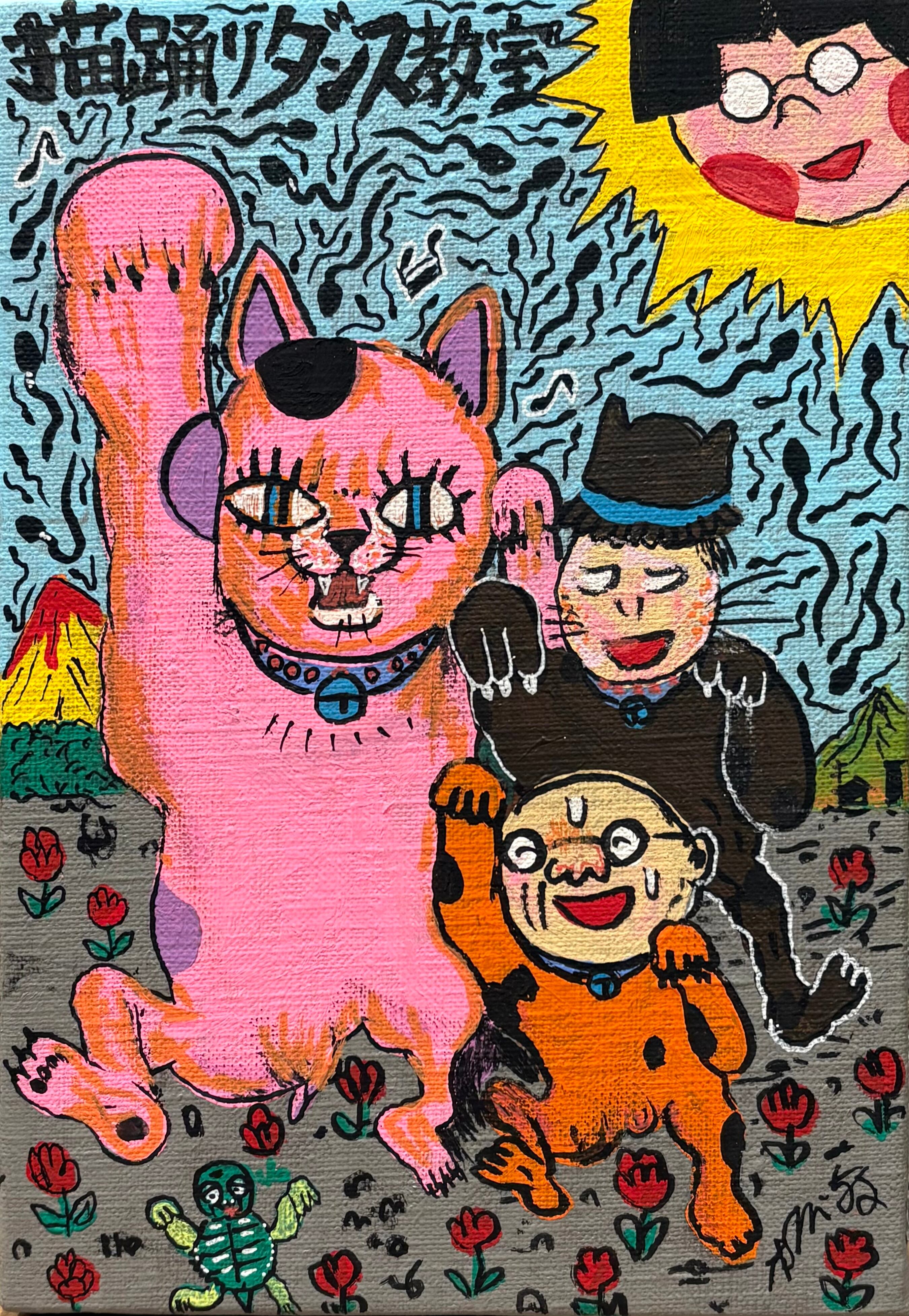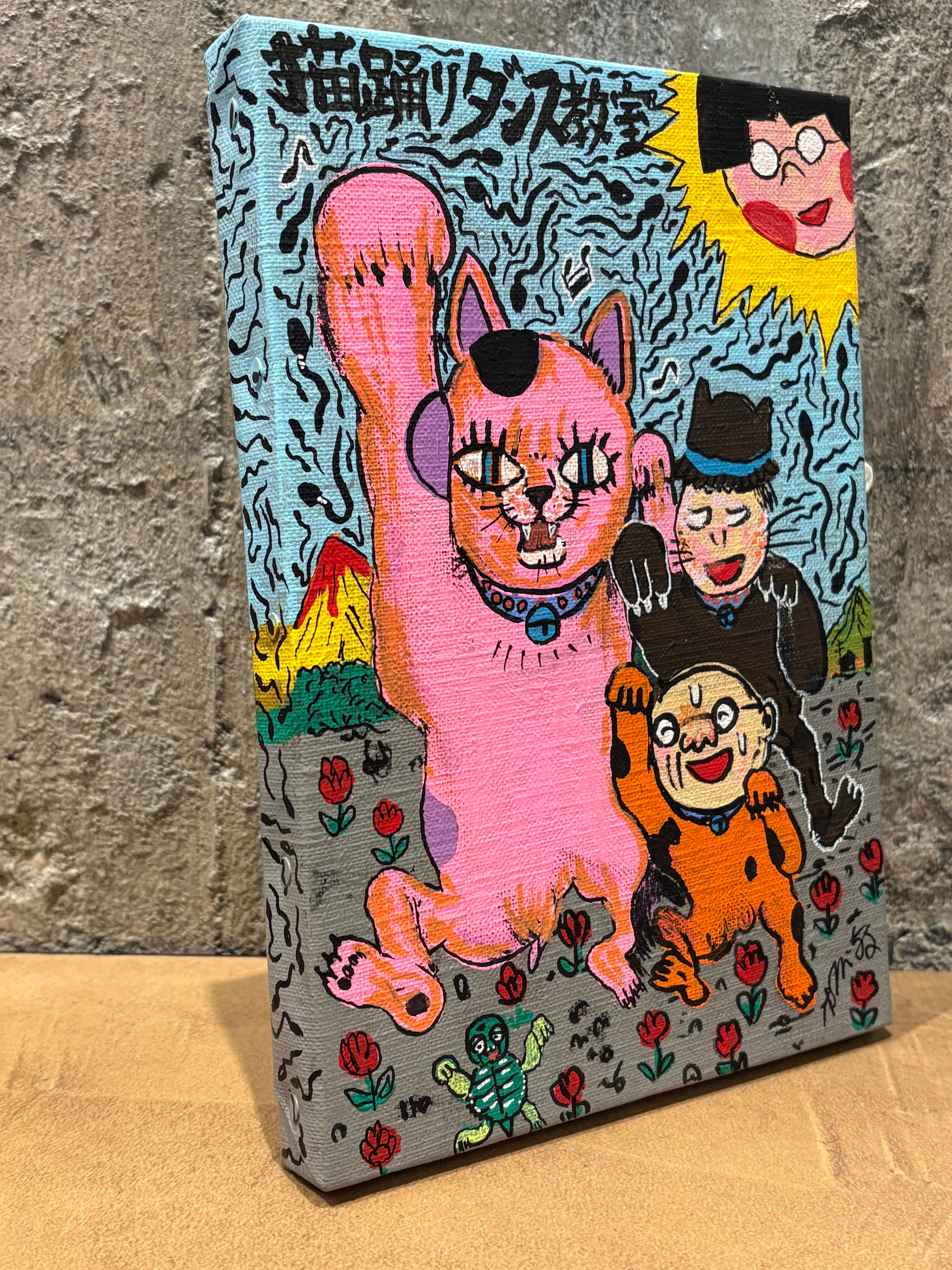 絵柄は過去のB6ドローイングより「部屋に飾れる」(根本敬作風比)ものを227㎜×158㎜のキャンバスに描きました。