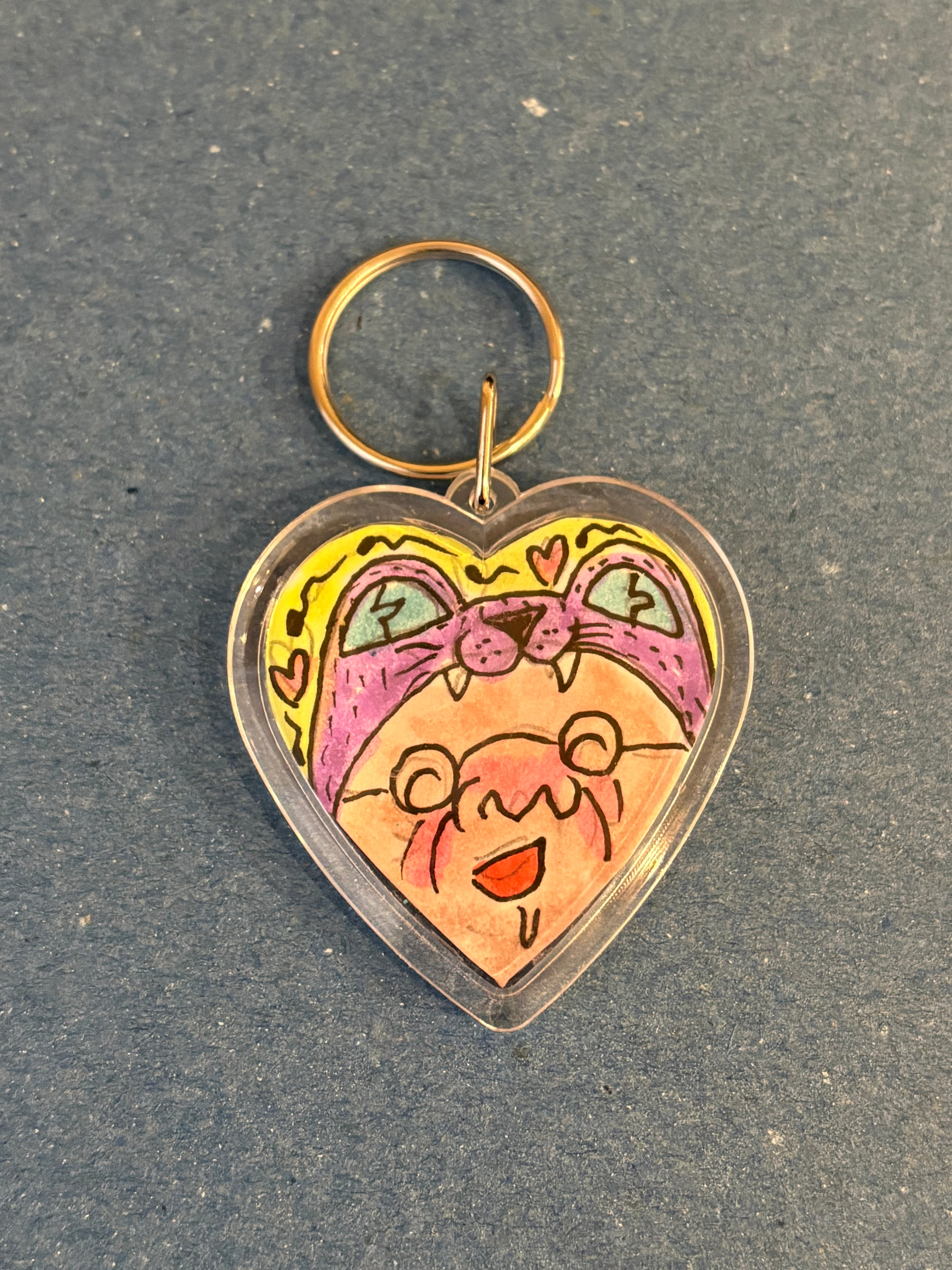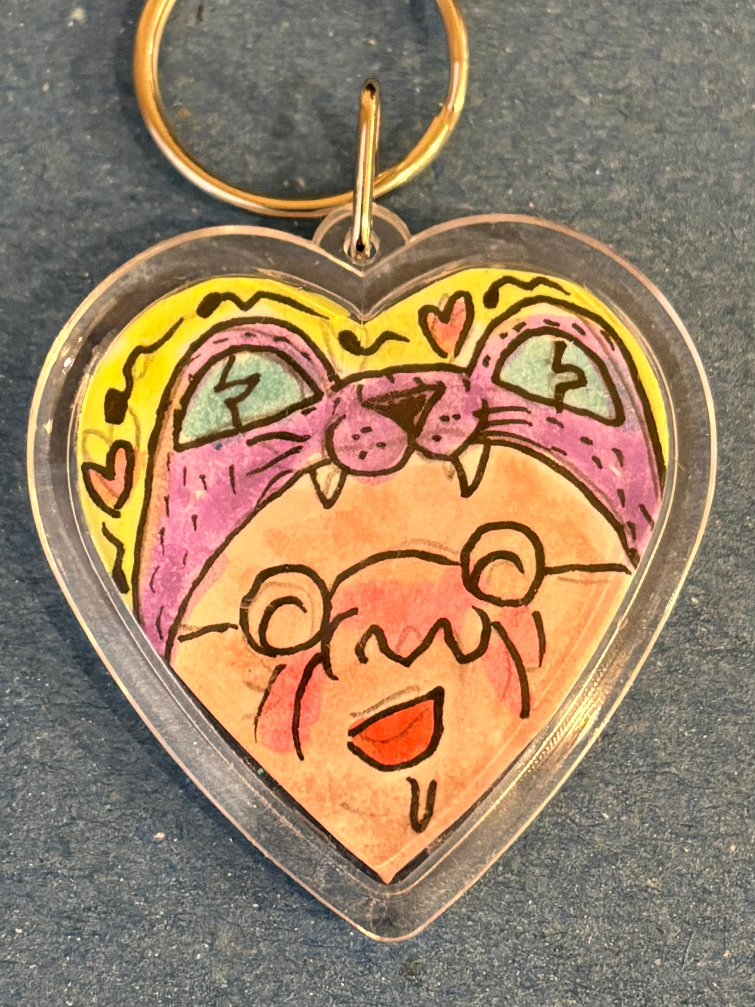 中身は1枚1枚手描きのイラスト1点物キーホルダーです。
