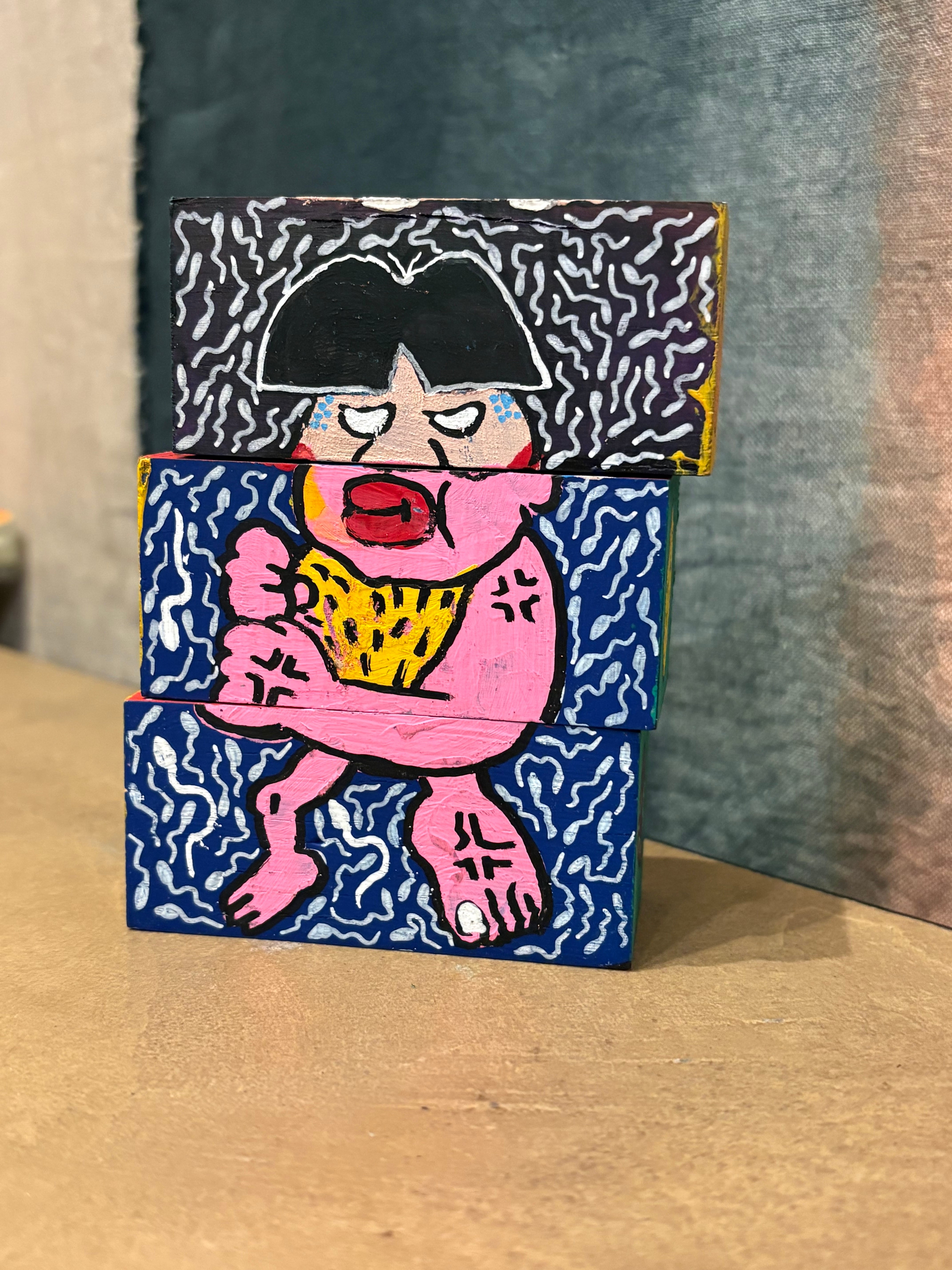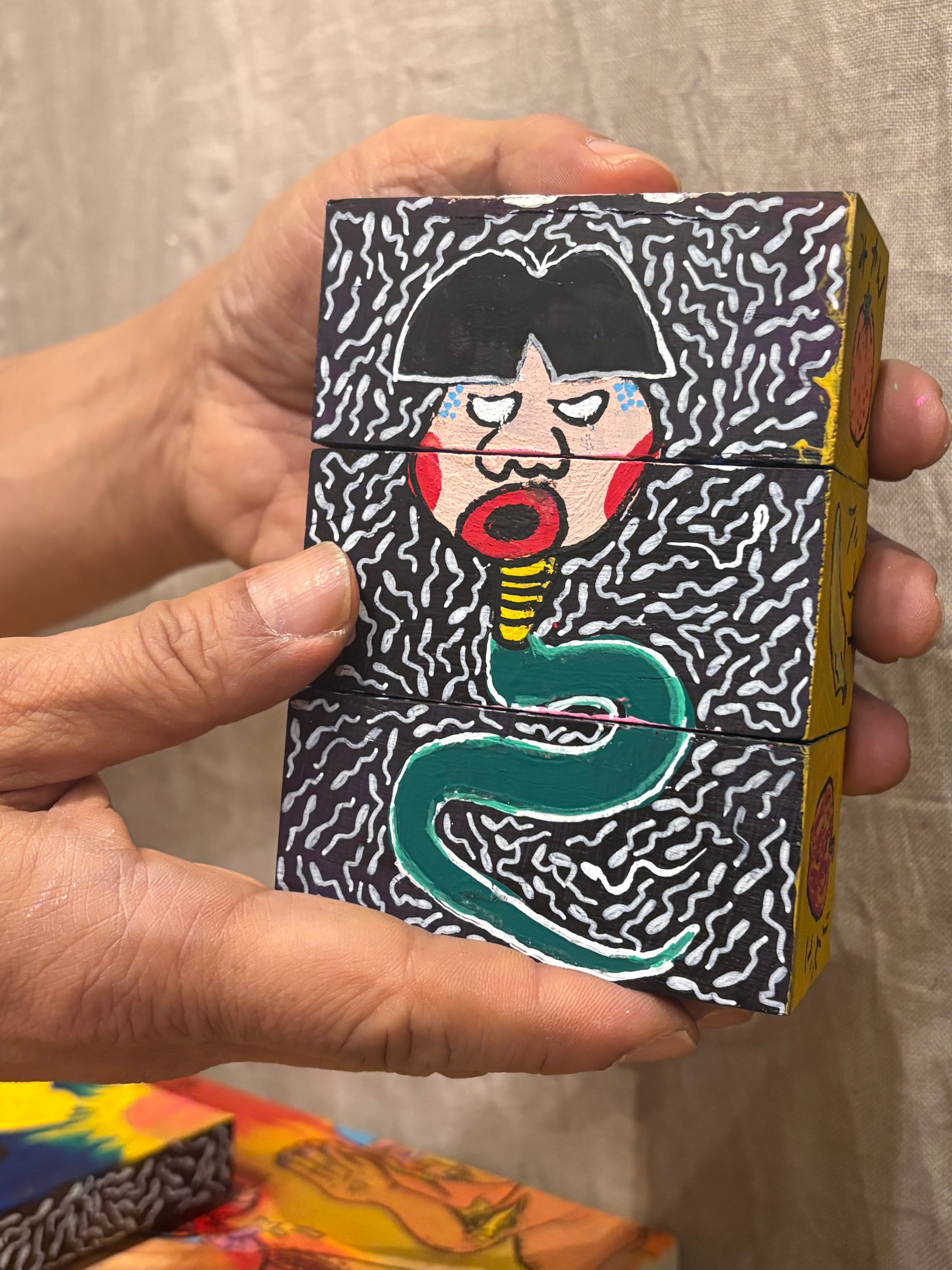 手描きの1点ものです。 6面体 キャラクターを合わせて飾ることができます。 売れても売れなくても、限定4セットしか作れません。 サイズは写真8枚目を参照してください。 素材 木 アクリル コーティング塗料