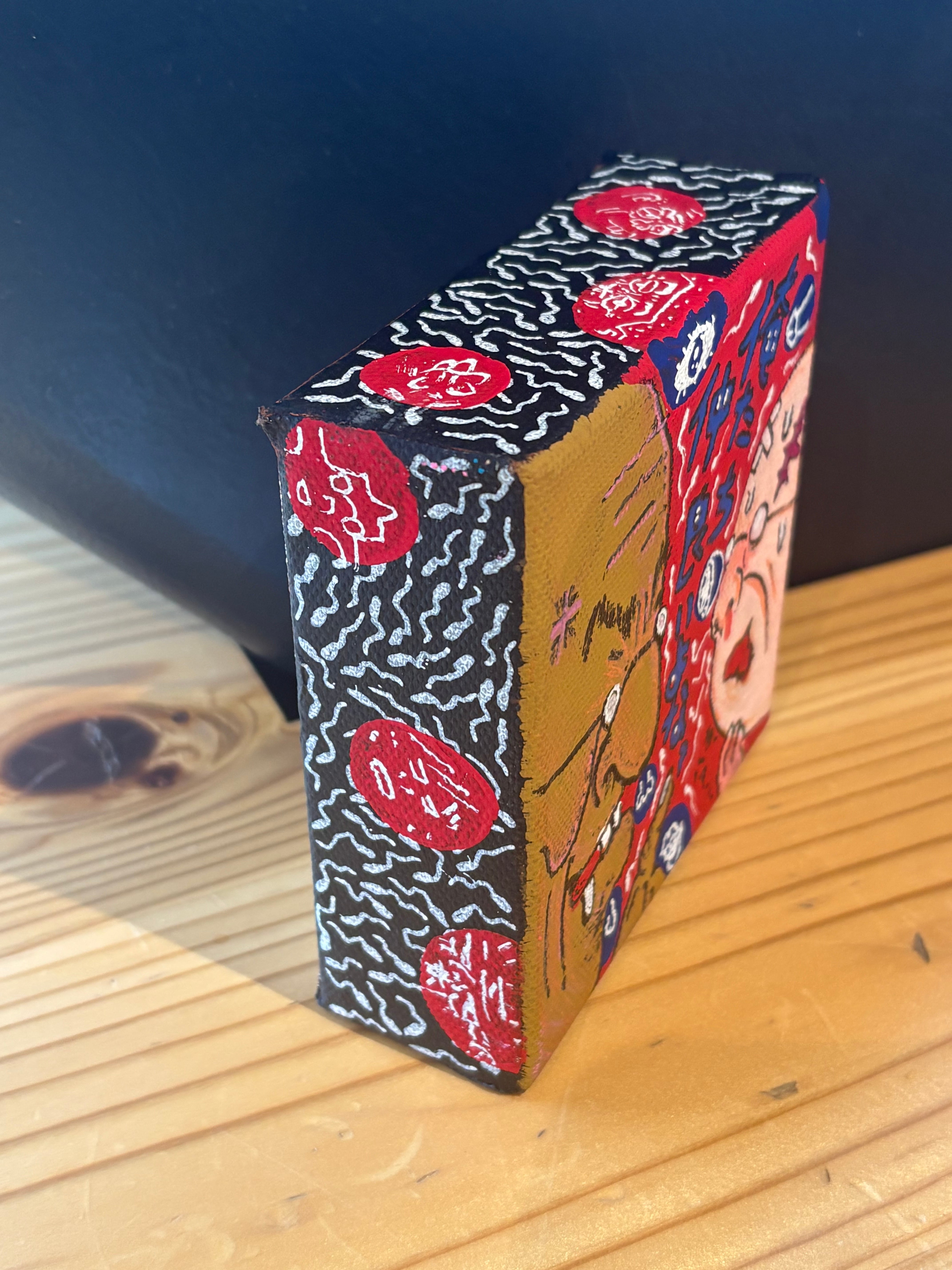 1点もの手描き3Dキャンパス絵画 3D張りキャンバスは、側面の厚さが37mm。 額に入れずに飾ることもでき、とても立体的で奥行のあるキャンパスです。 綿100%。白ジェッソ地塗り、アクリル、トップコート 木枠材質:モミ材 サイズ10cm×10cm メッセージカード付きでお送りいたします。