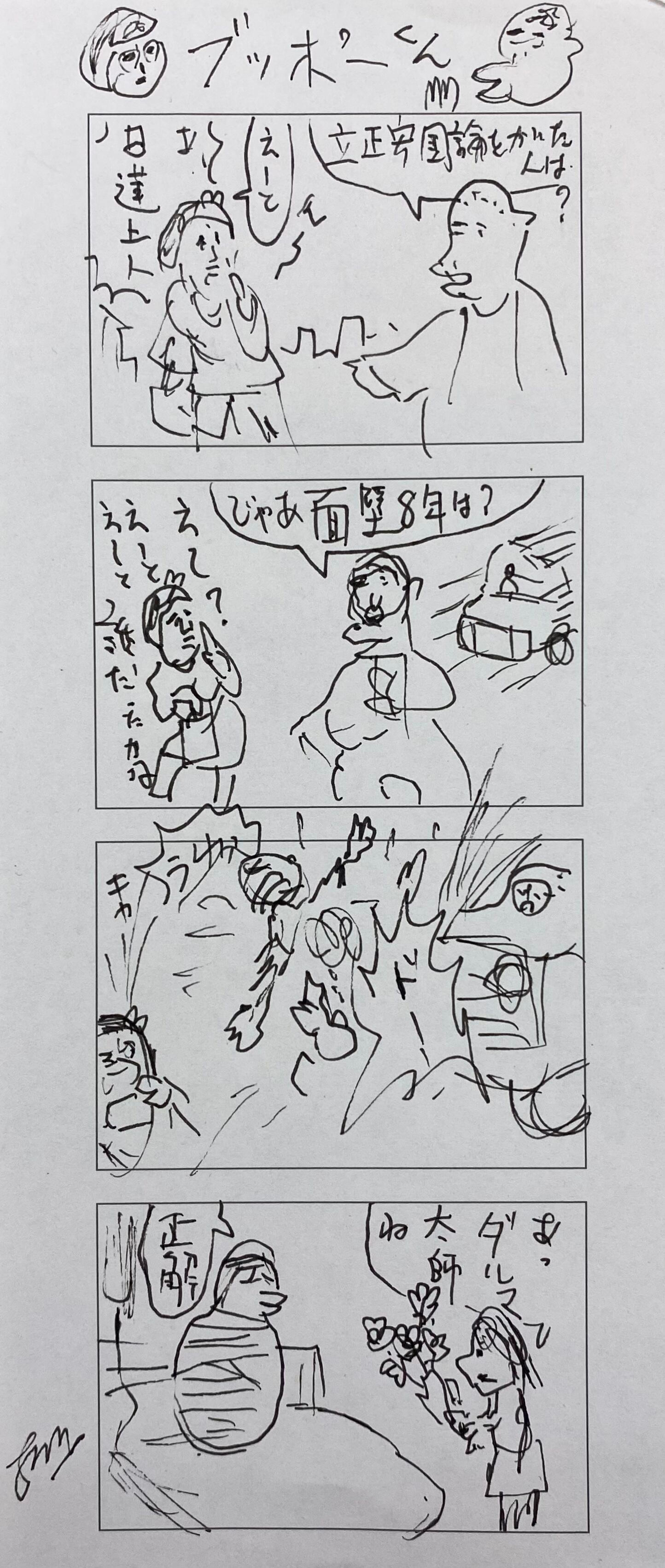書き下ろし4コマ漫画です 「ブッポーくん」 サイズ 縦18.4cm 横8.2cm 根本さんの手書きメッセージ付きでお送りいたします。