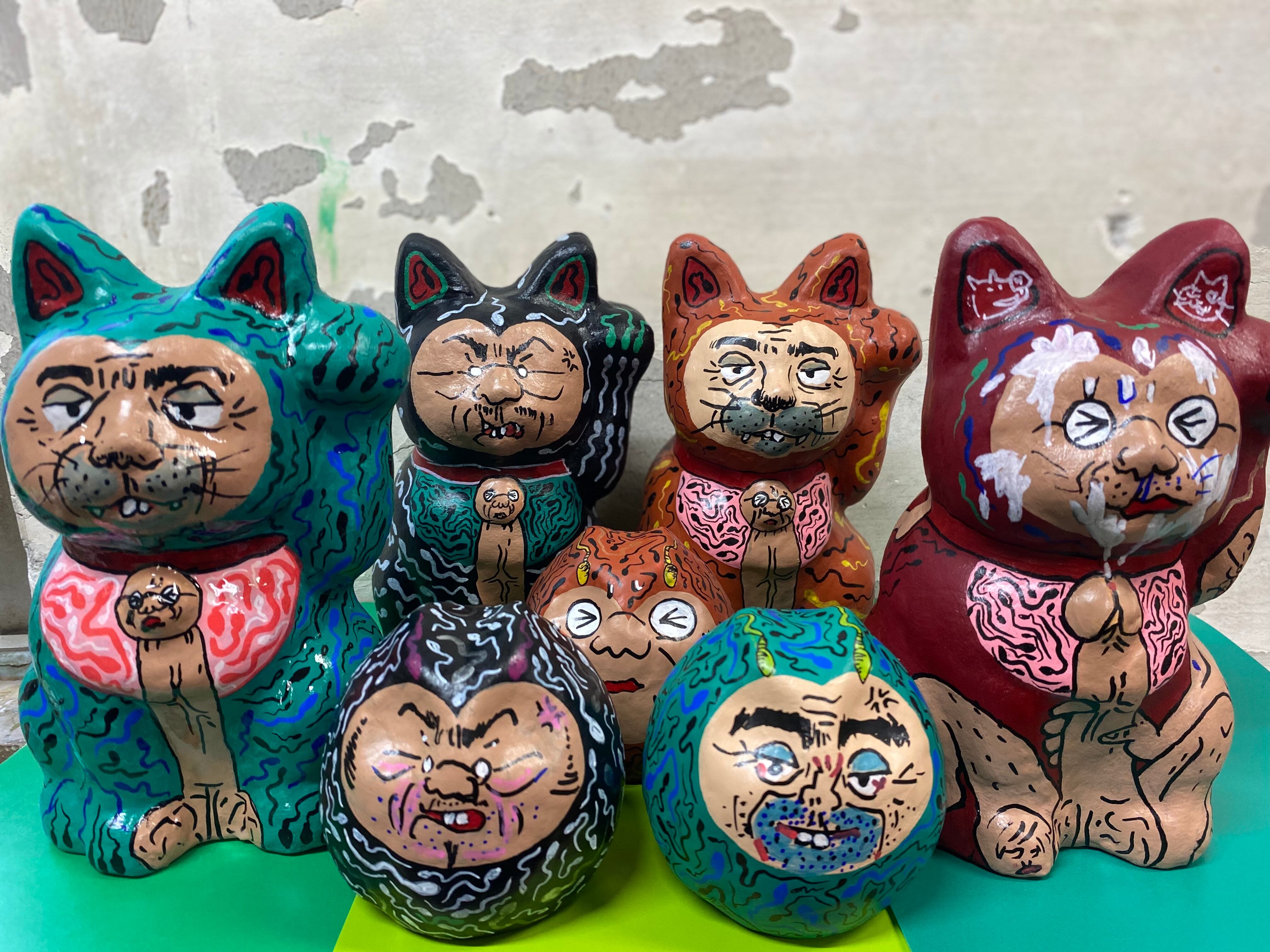 福ロウだるま サイズ 横7.5cm 幅7.5cm 高さ7.5cm 素材 張子にアクリル 手塗り手描きです。 ※メッセージカードと共にお送りいたします。