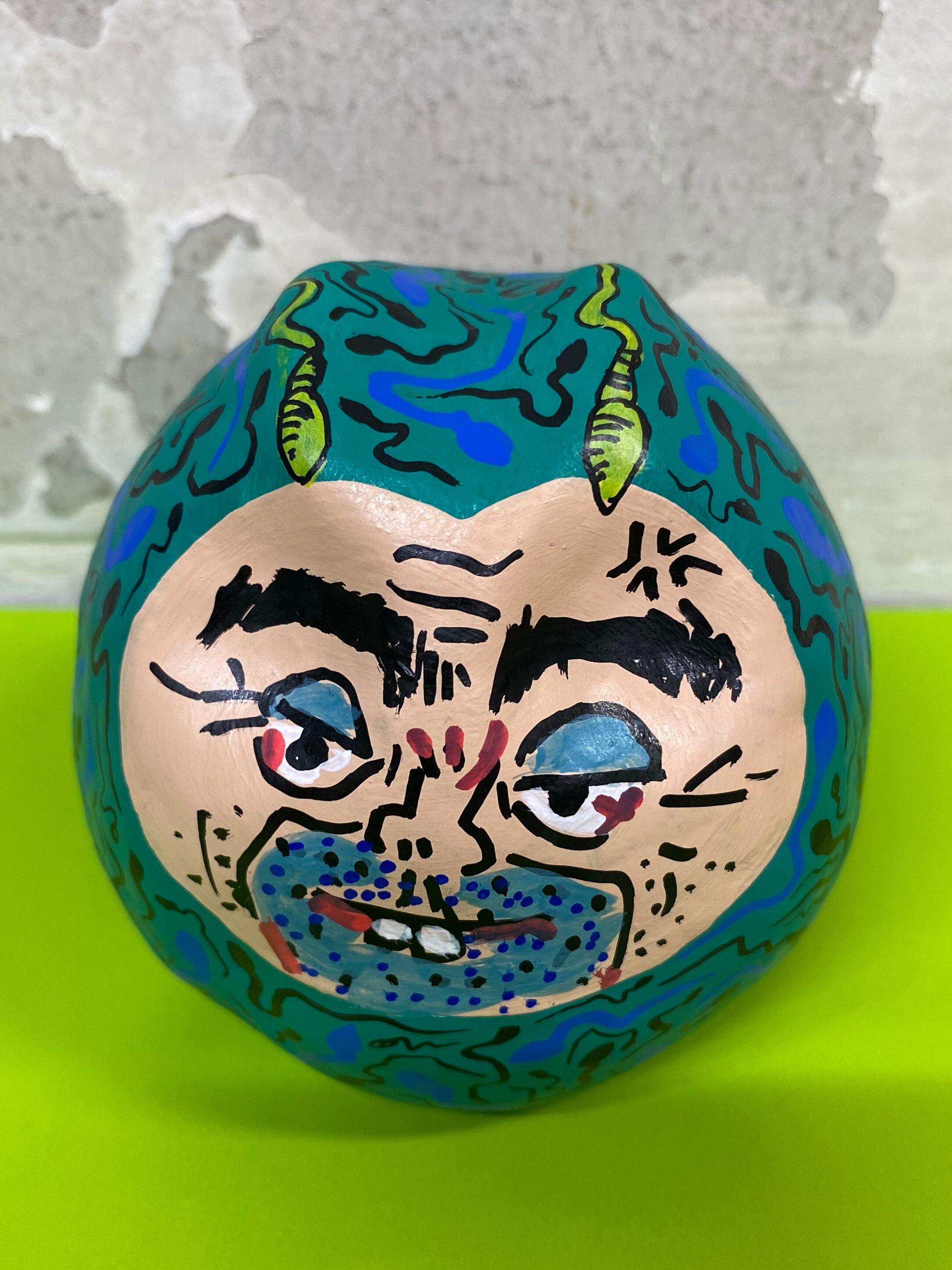 福ロウだるま サイズ 横7.5cm 幅7.5cm 高さ7.5cm 素材 張子にアクリル 手塗り手描きです。 ※メッセージカードと共にお送りいたします。