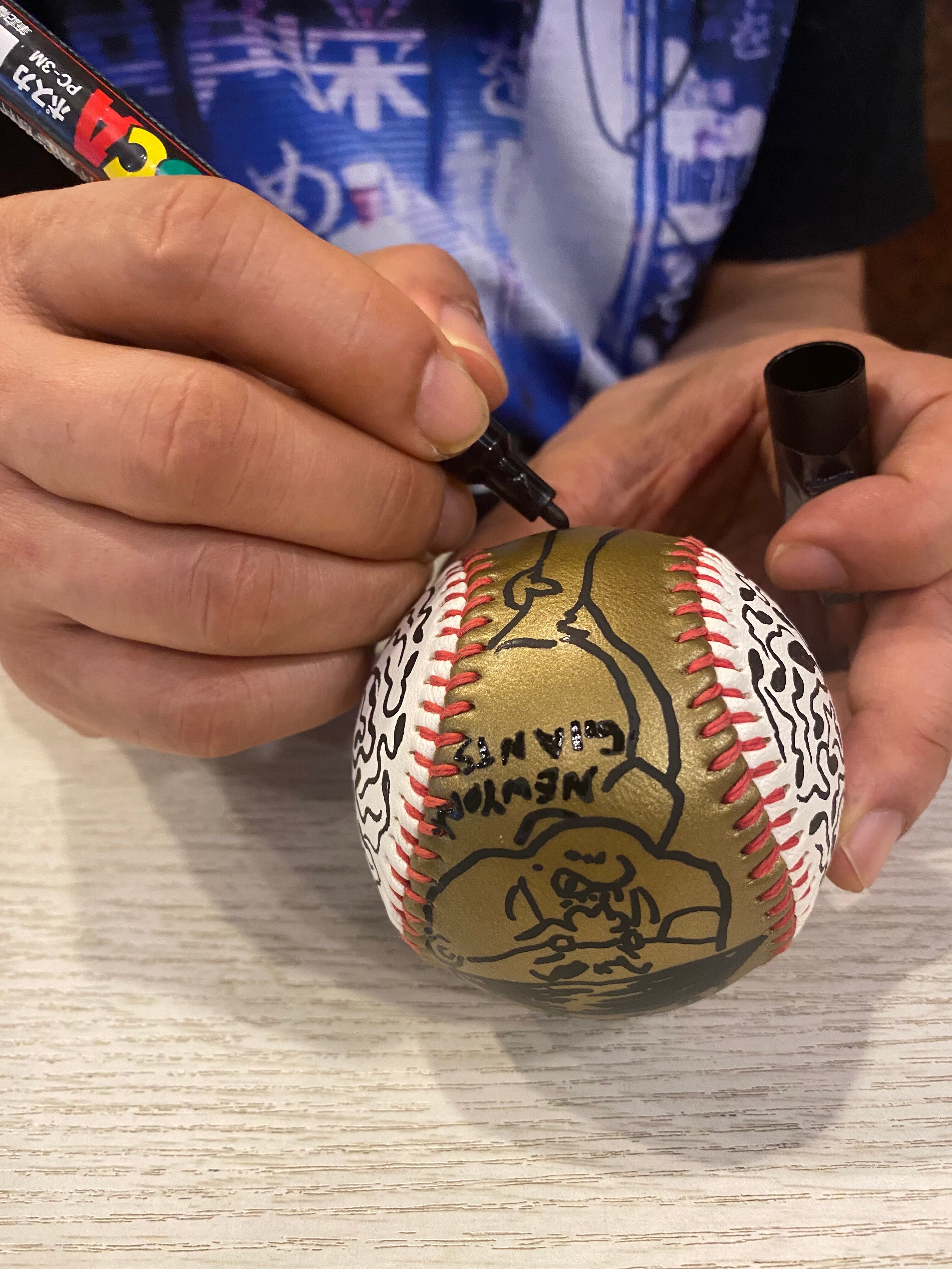 ボール(念仏を唱えるように精子を沢山描いた) 硬球タイプのボールに手描き。