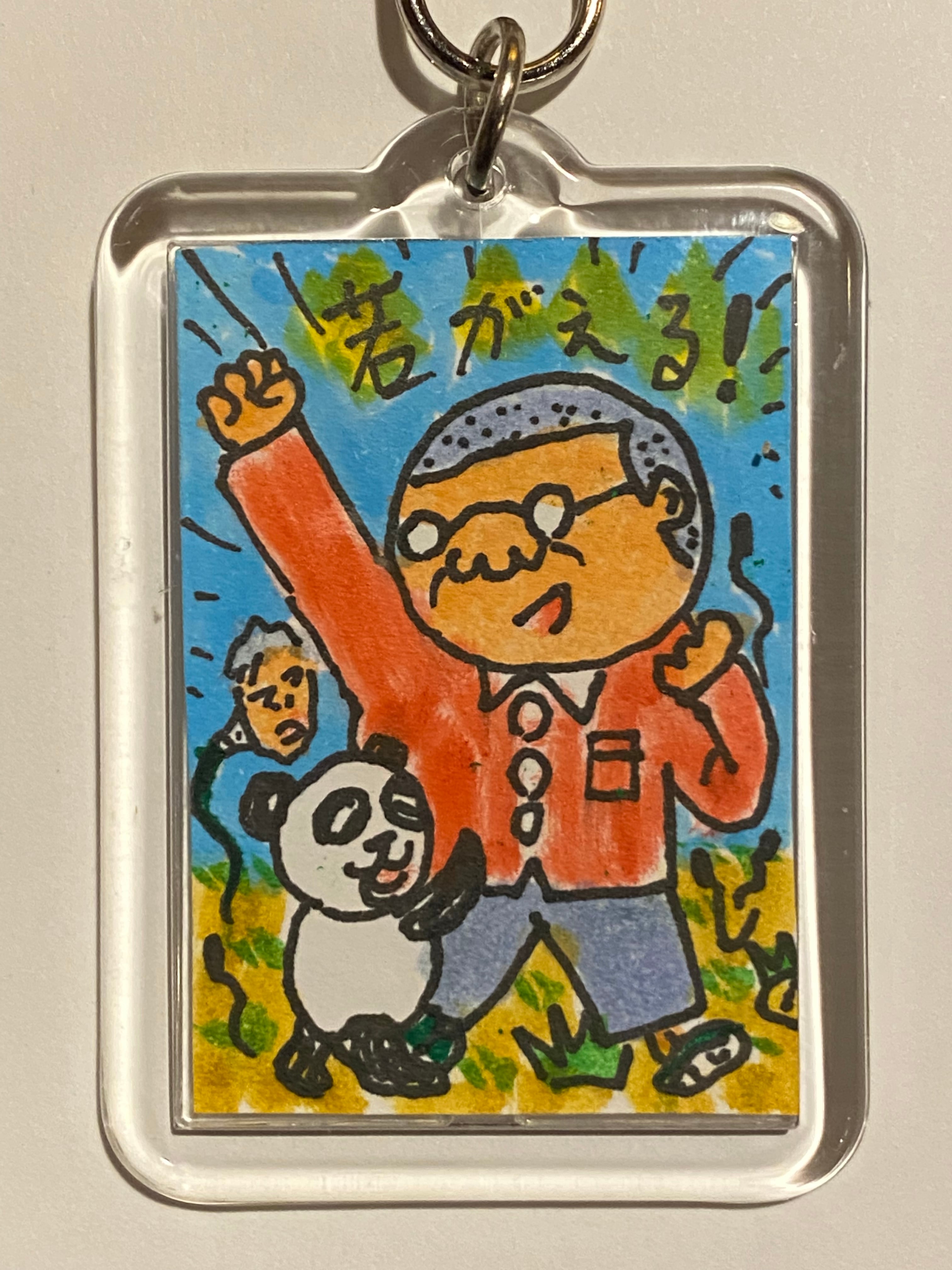 新登場の根本敬手描き着色キーホルダー 後ろには「でもやるんだよ!」と書かれた1品! 「身につけたり持ち歩ける商品を!」とのお客様からのご提案により新登場です。 バックにつけたり、鍵につけたり、是非毎日持ち歩いてください♪お守りのように。