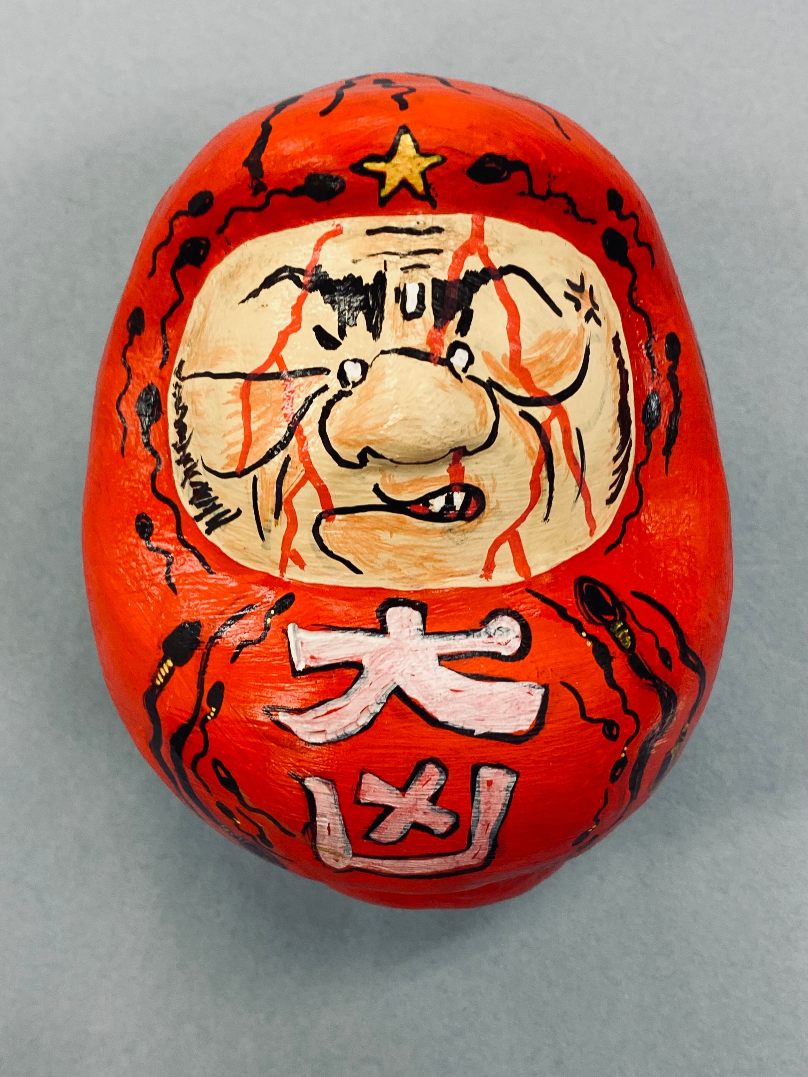 年末年始、強気に出て厄が来ても撥ねつける達磨 素材 張子にアクリル 手塗り手描きです。 ※メッセージカードと共にお送りいたします。