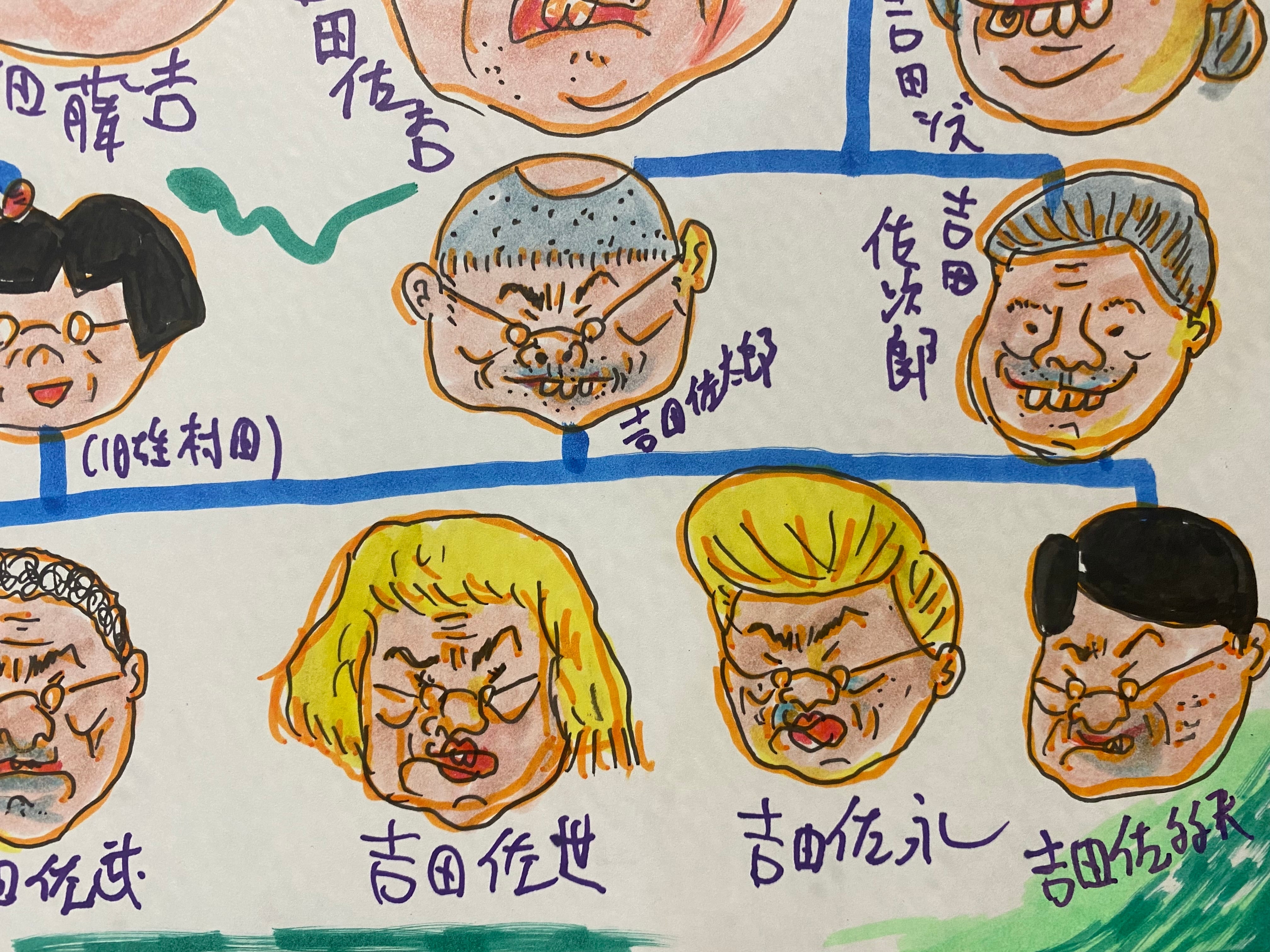 【5枚限定・原画・実印付き】『吉田家(村田家)三代顔面家系図』A 4 4/5