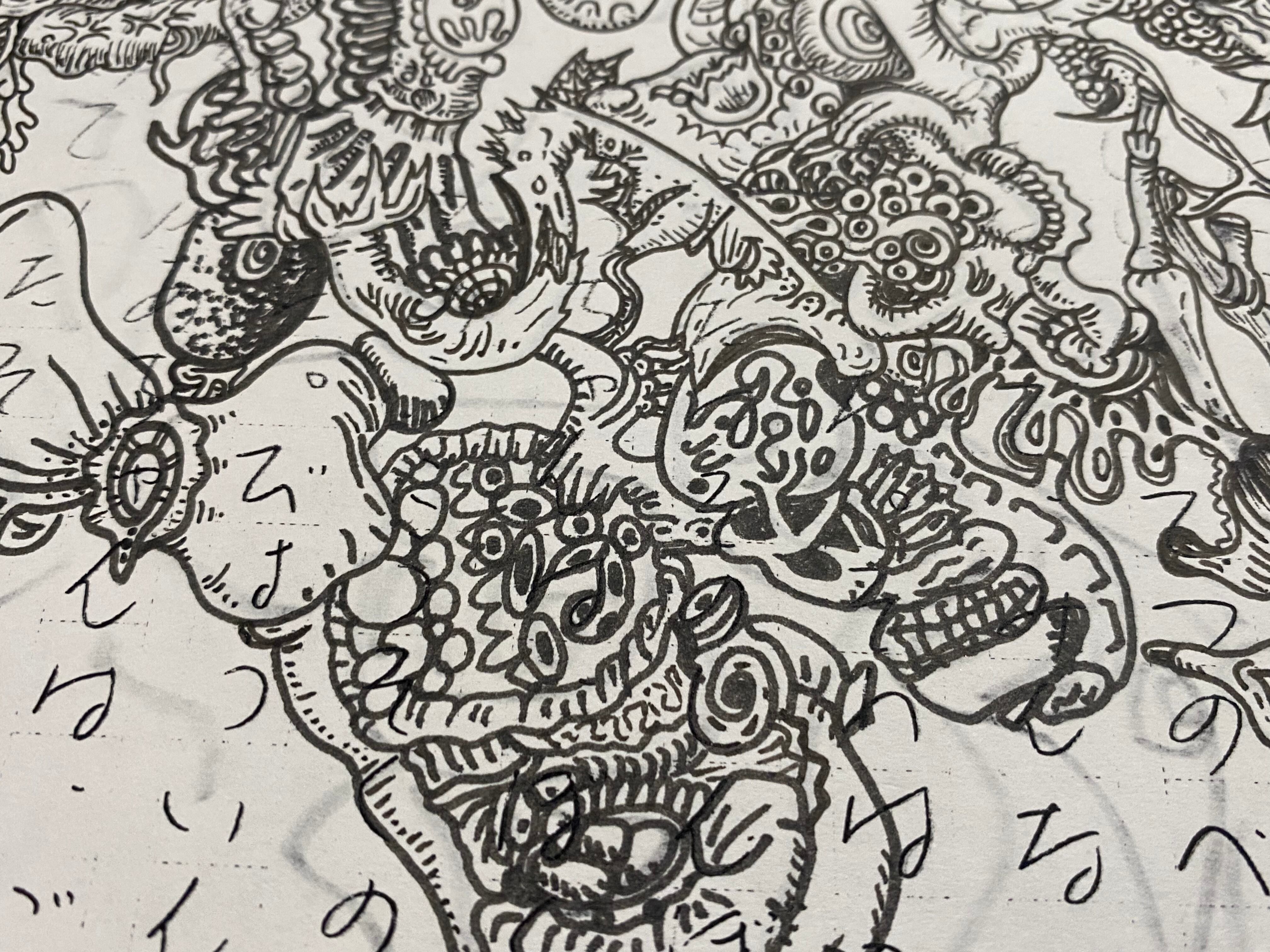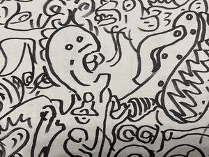 佐川一政さんの原稿コピーの上からドローイング。その裏面(いやそちらがそもそも表?)にも太い線でドローイング。 両面・原画・一点物 サイズA4 どちらの面も、めちゃくちゃカッコいい1点です。 根本さんのメッセージカード付きで発送させて頂きます。