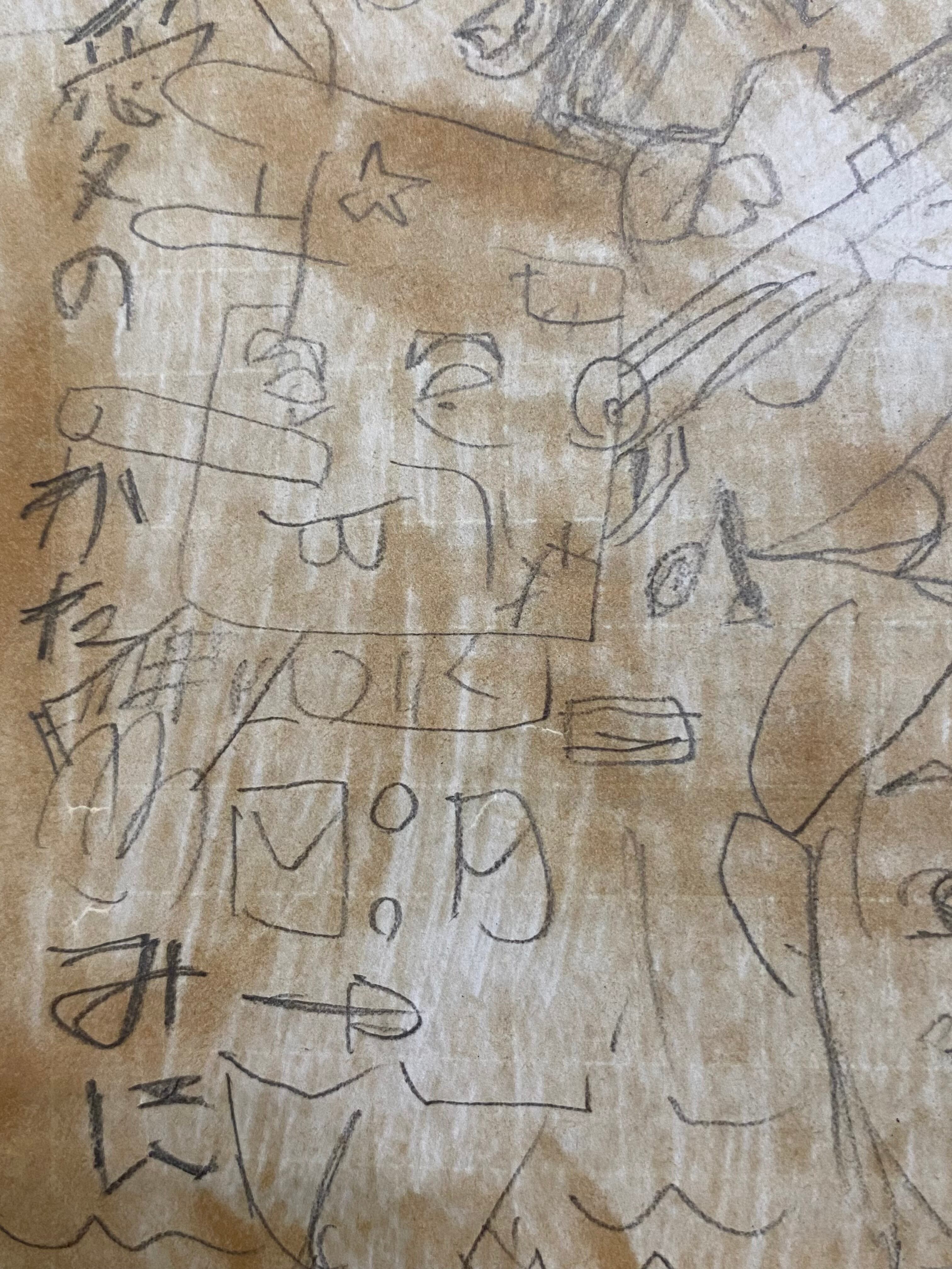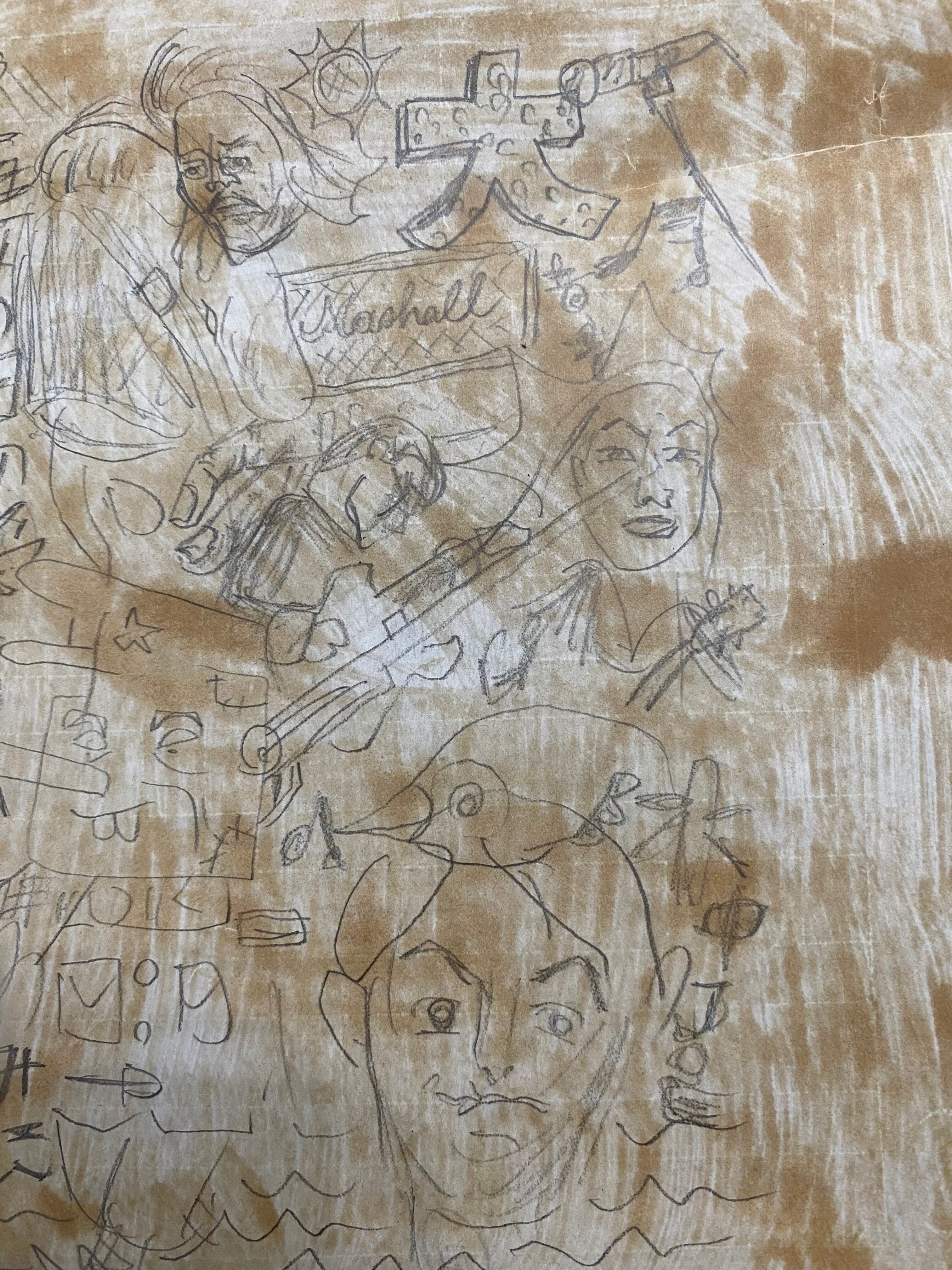 30年程前ミュージックマガジンに描いた「想い出波止場」のイラスト。アレコレ汚して意図的に見にくくした。それが経年劣化が更に良くなったかと思います。 原画・一点物 サイズ 180mm×215mm 根本さんのメッセージカード付きで発送させて頂きます。