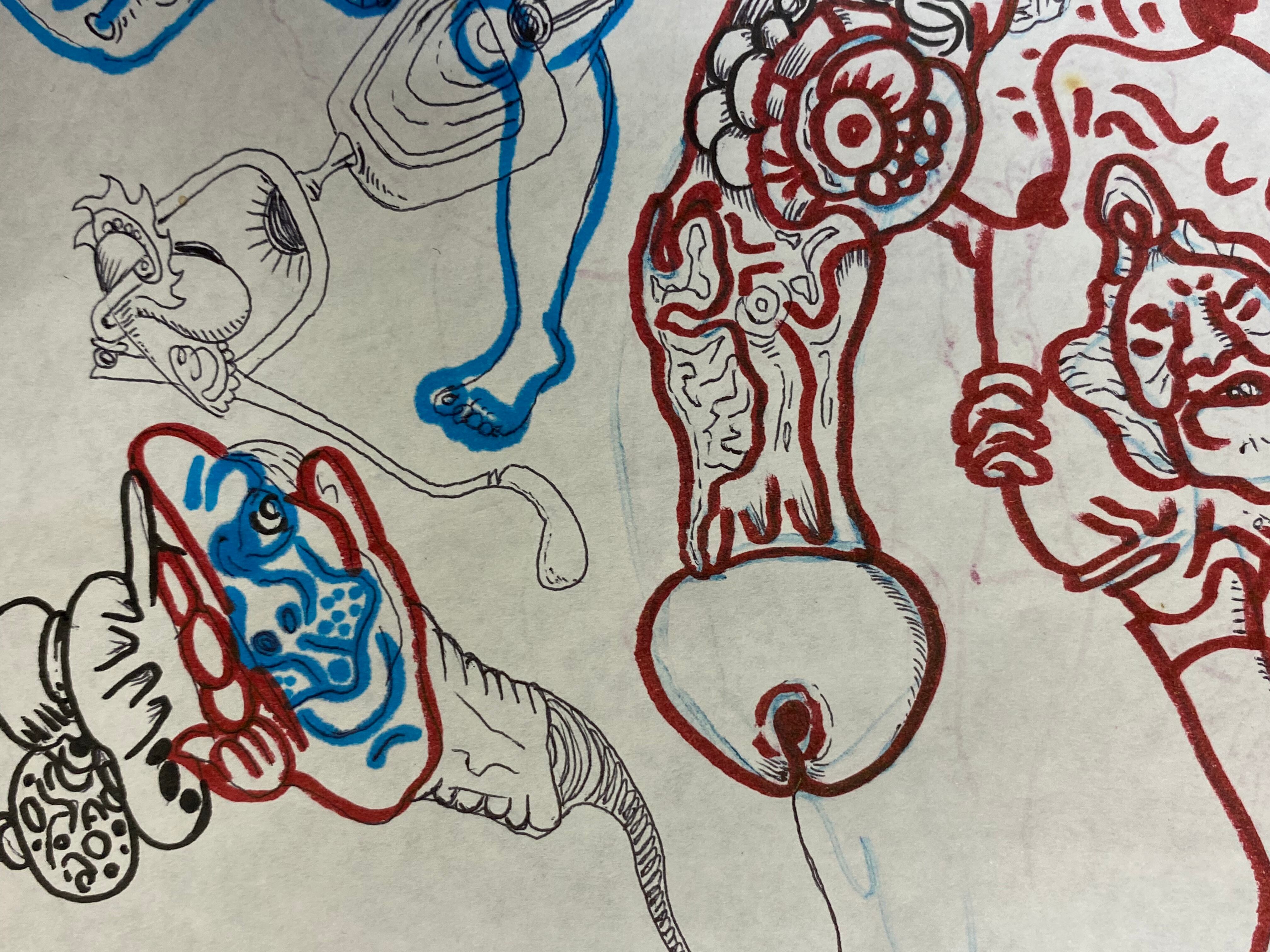 3色ドローイング 原画・一点物 サイズ295mm×210mm A4 根本さんのメッセージカード付きで発送させて頂きます。額に入れて送らせていただきます。