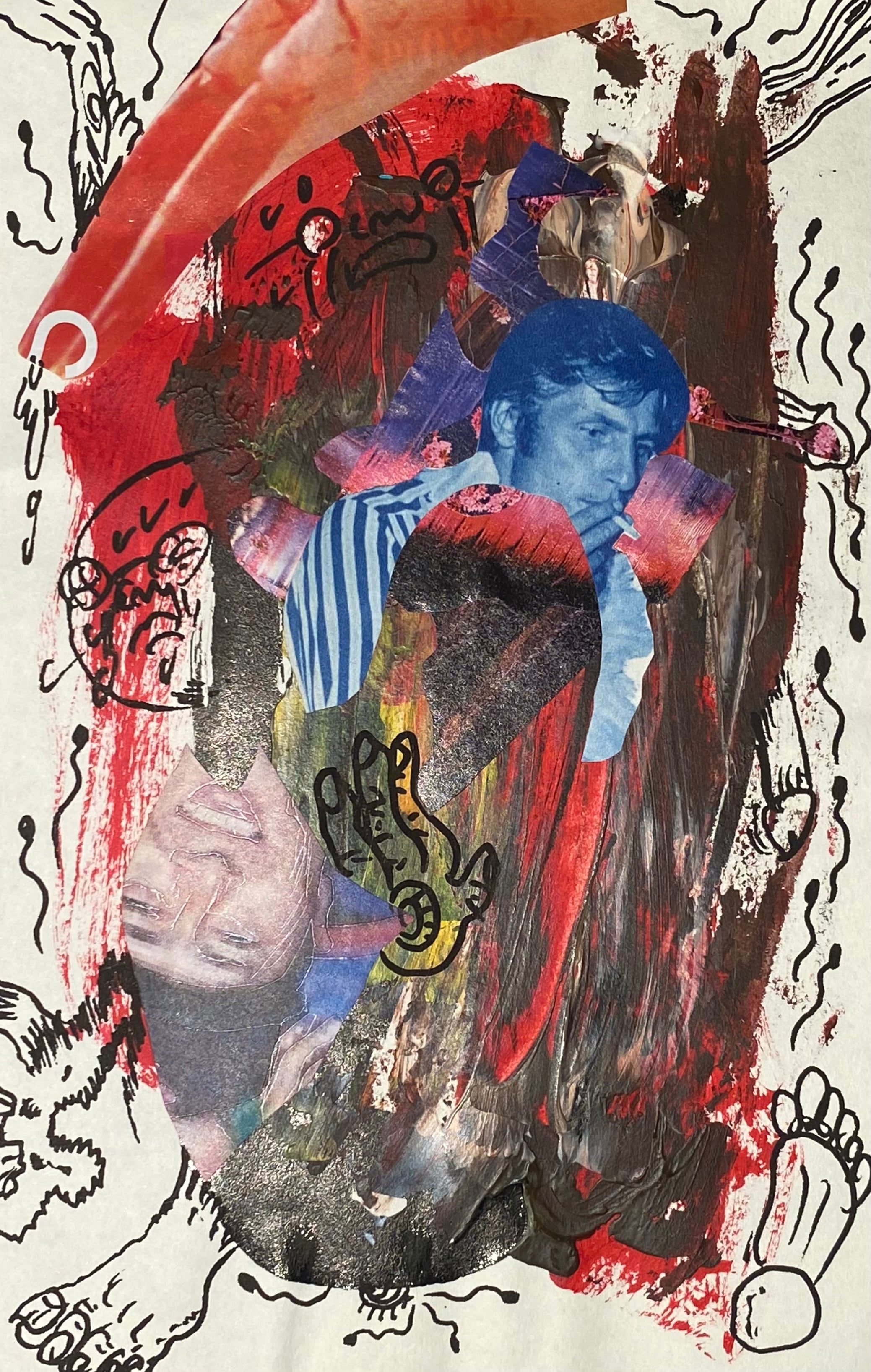 コラージュドローイングシリーズ「混沌のパーフェクトゲーム」 サイズ 120㎜×134㎜ 根本さんのメッセージカード付きでお送りいたします。