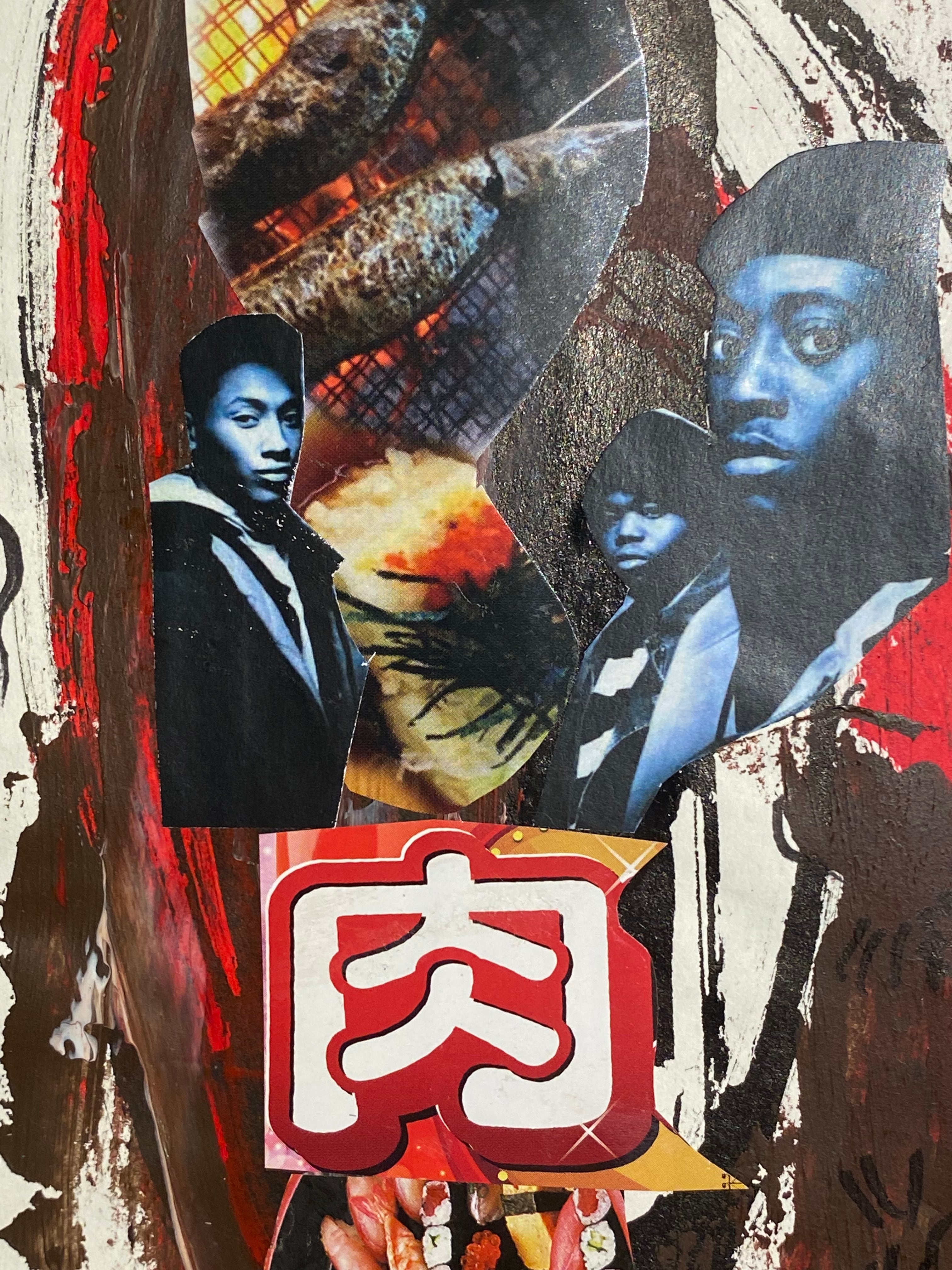 コラージュドローイングシリーズ「肉」 サイズ 120㎜×134㎜ 根本さんのメッセージカード付きでお送りいたします。