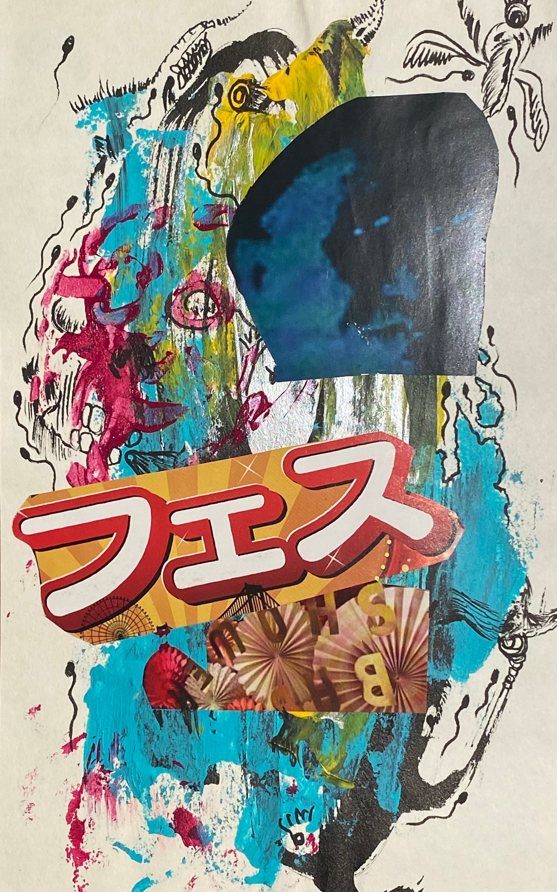 コラージュドローイングシリーズ「祭り」 サイズ 120㎜×134㎜ 根本さんのメッセージカード付きでお送りいたします。