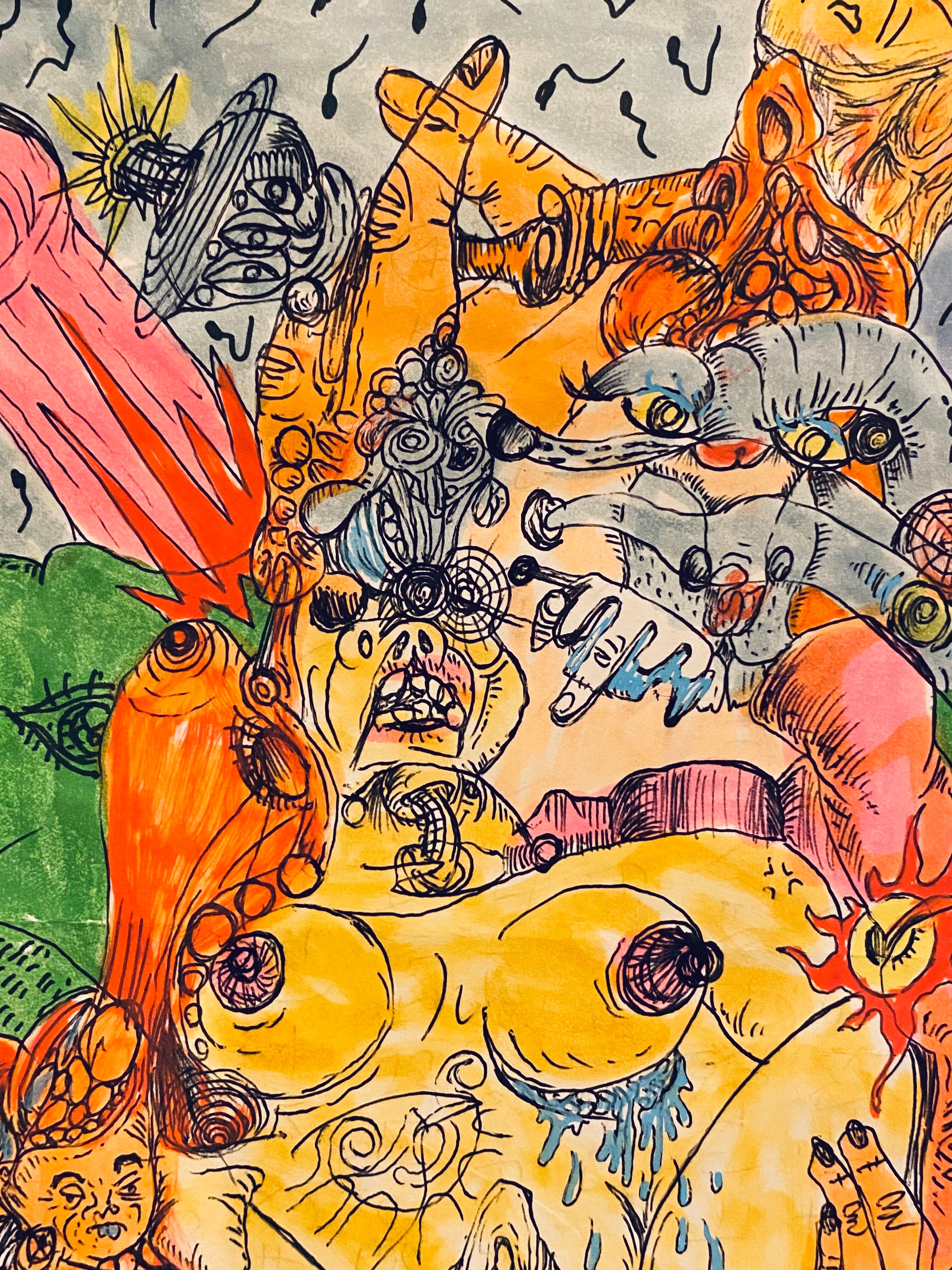 着色ドローイング原画 棚からボッタクリ 原画・一点物 サイズB5 根本さんのメッセージカード付きで発送させて頂きます。