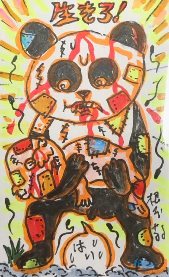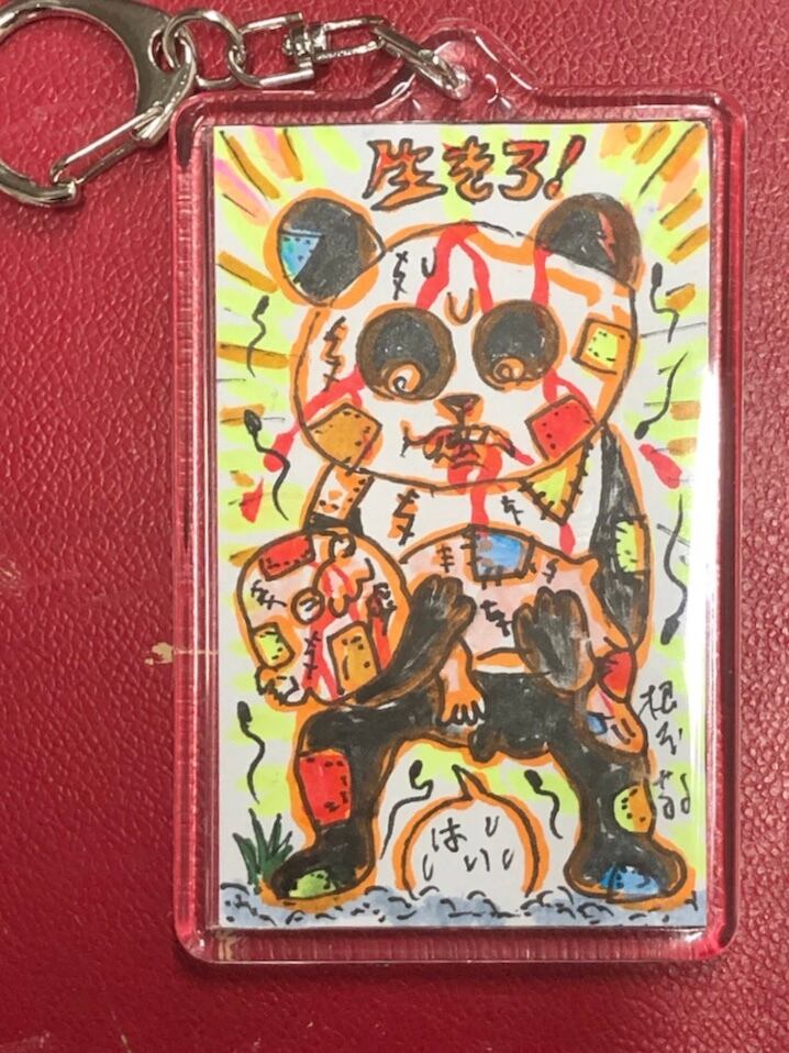 根本敬手描き着色キーホルダー 四角(大) 「生きろ!」 「身につけたり持ち歩ける商品を!」とのお客様からのご提案により新登場です。 バックにつけたり、鍵につけたり、是非毎日持ち歩いてください♪お守りのように。