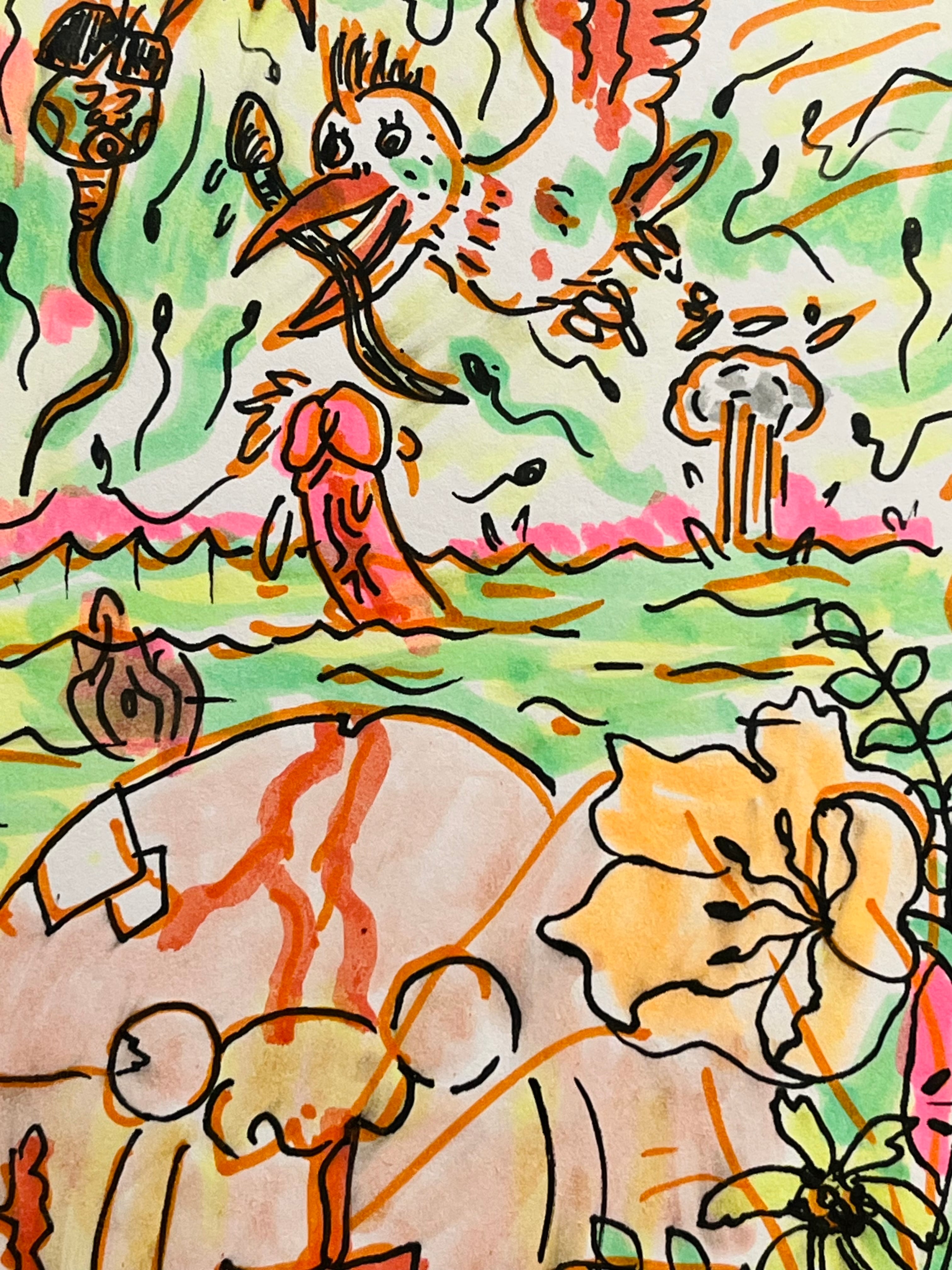 原画・着色ドローイング 「今はもう秋…アキラメナイゾ!」 原画 サイズ:B6 ※根本さんからの手書きメッセージ付きで発送させていただきます。