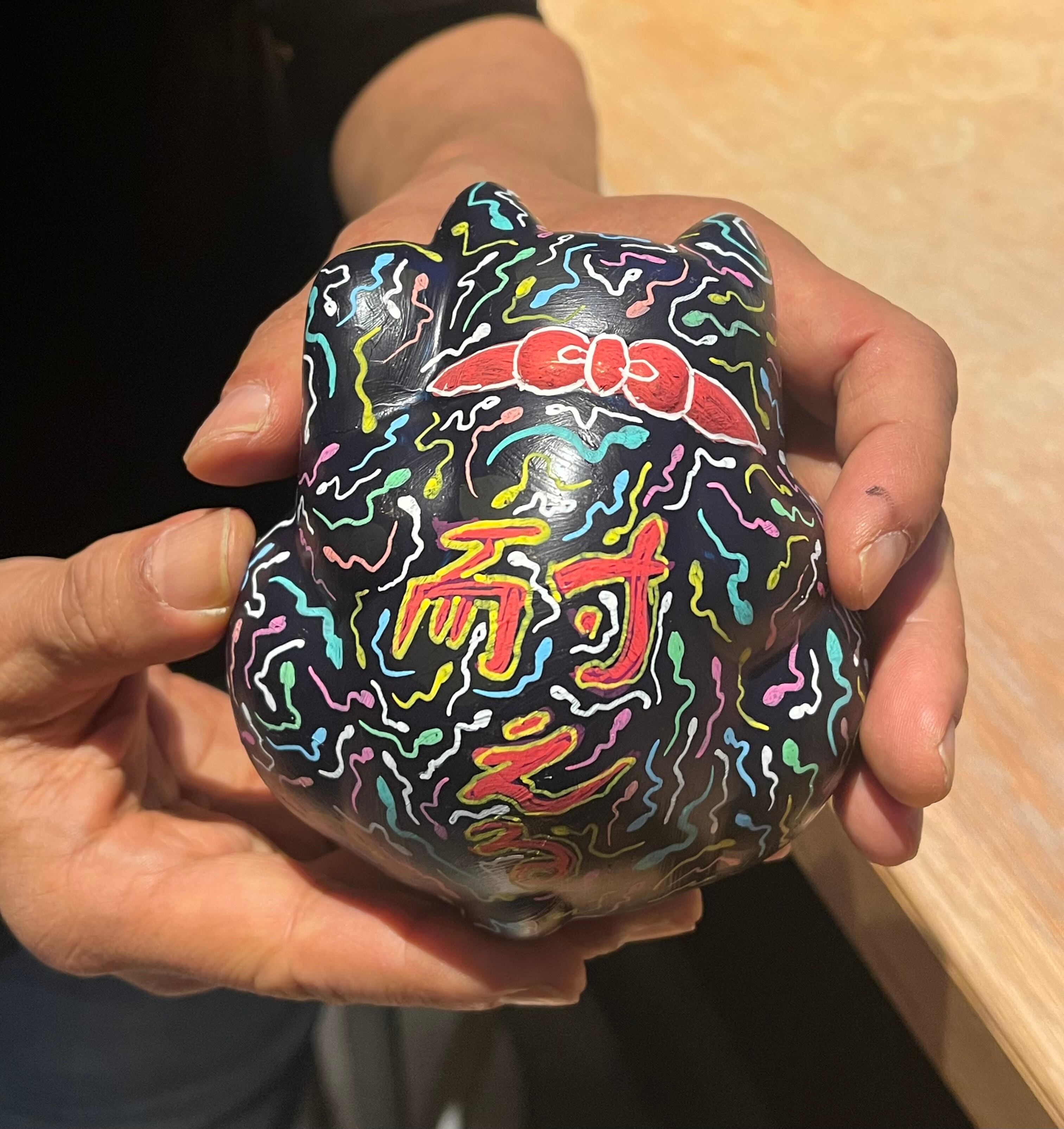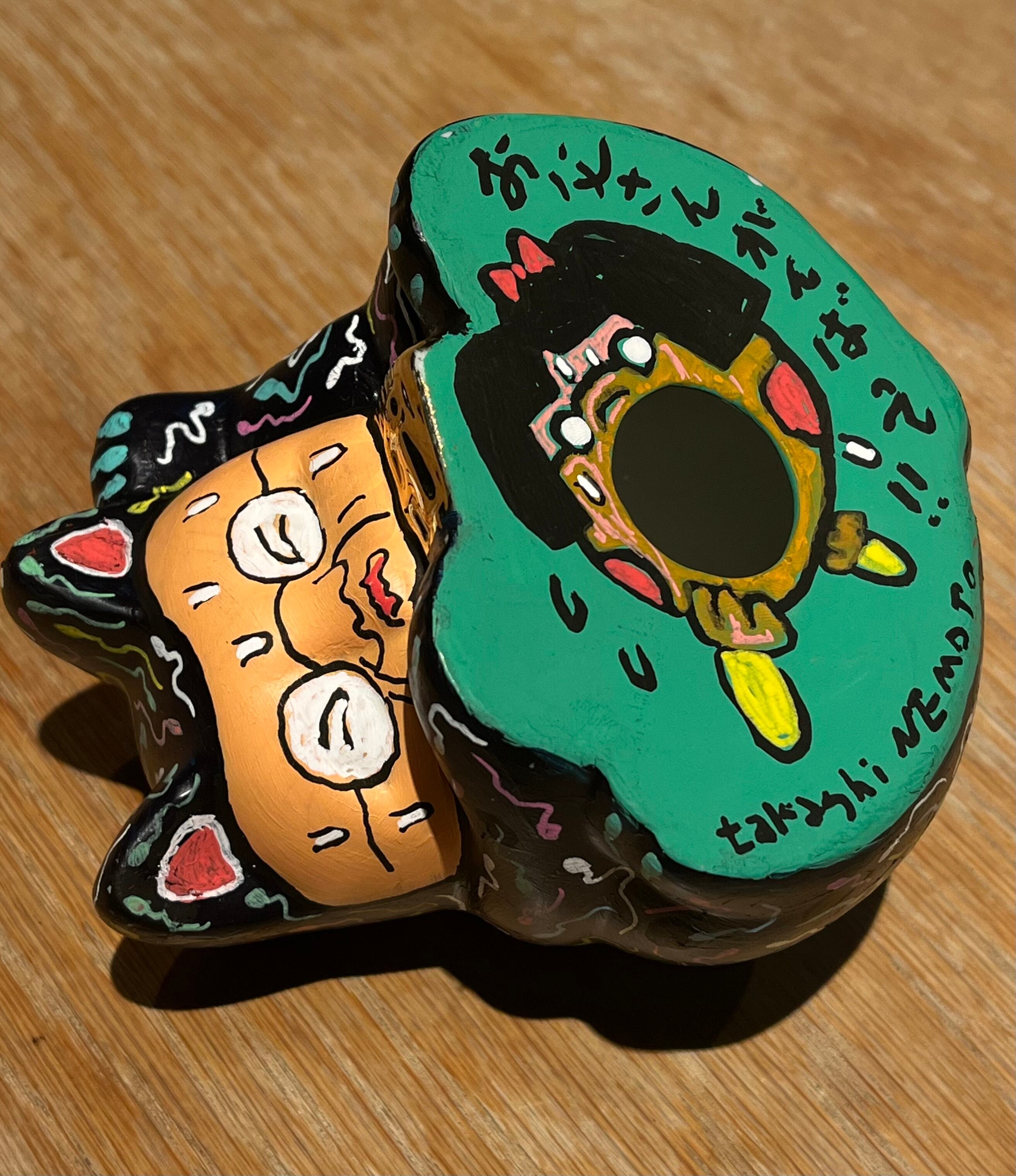 手塗の1点ものです。 素材 陶器 アクリル 光沢スプレー仕上げ 置き方自在で楽しめます。 根本さんの手描きメッセージ付きでお送りいたします。