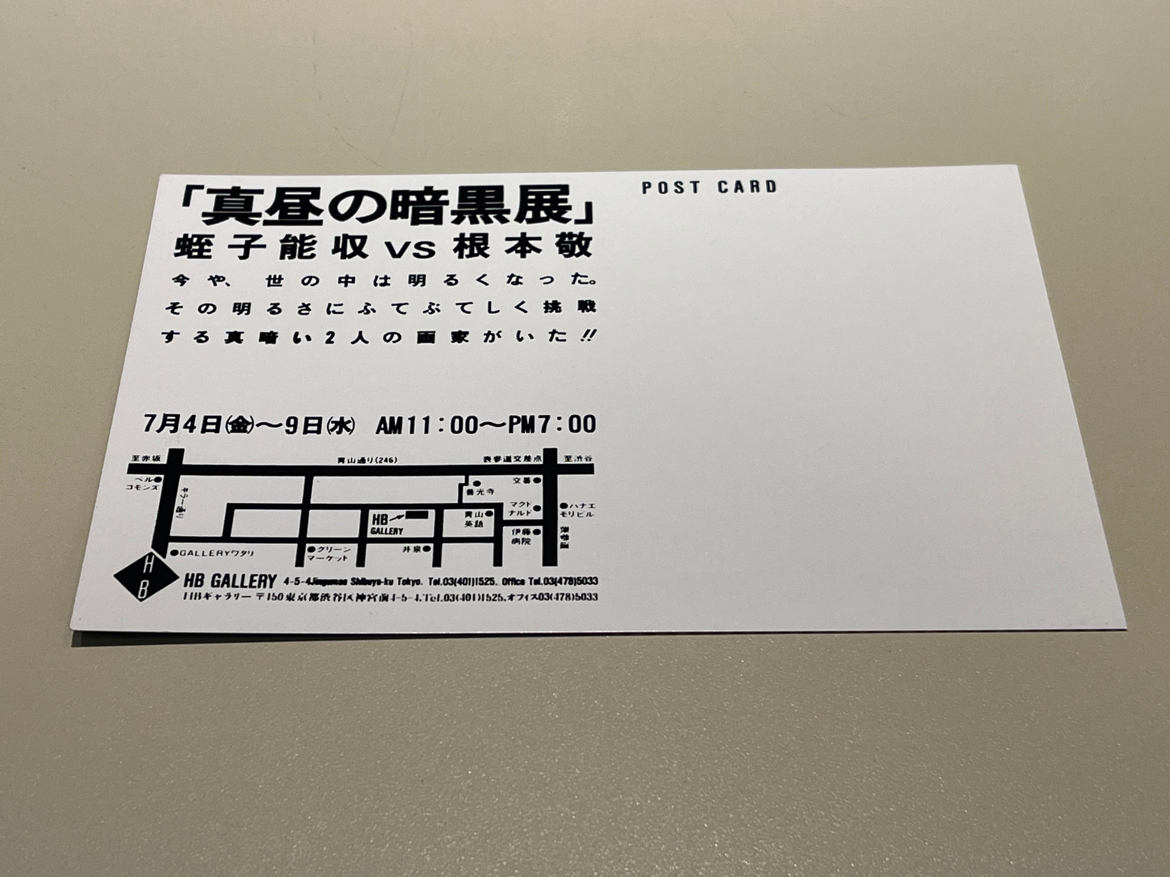 原画・一点物です。 サイズA4 ポストカード 手描きドローイング 約40年前に蛭子さんと行った悪夢のような二人展、その時のDMを記憶だけで再現した。その後本物が見つかり比べてみたら大体あっていた。本物からおこしたポストカード両面復刻版もついています。