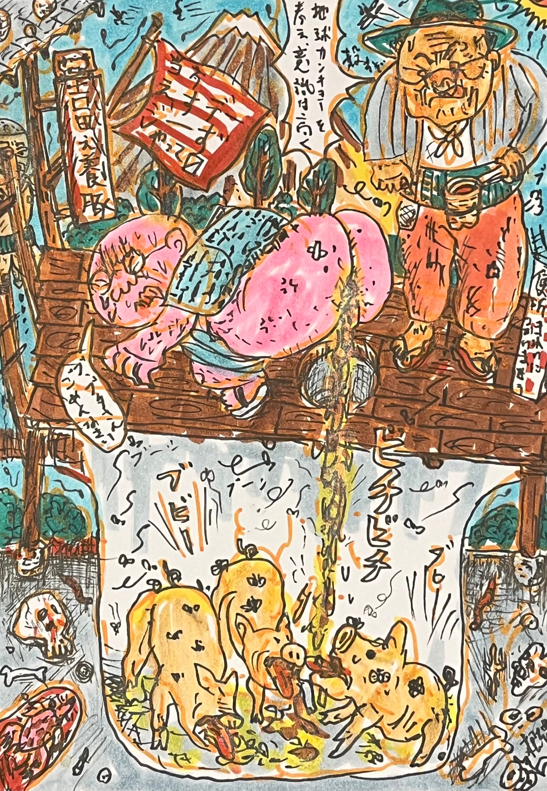 原画・着色ドローイング「おめ、もっと意識つーもんを高くもてや!」 B6