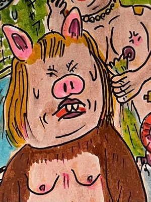 原画・着色ドローイング「私は女、女湯へ」 B6